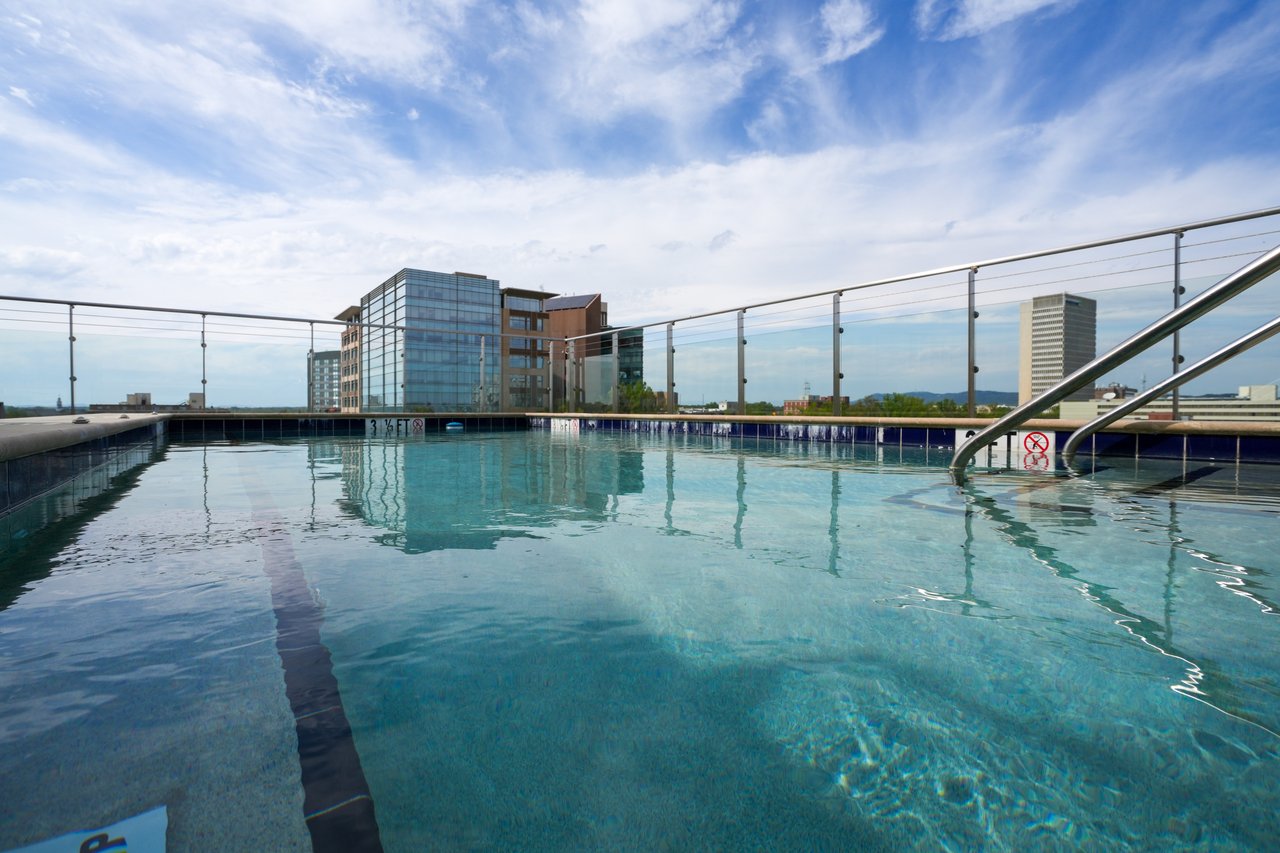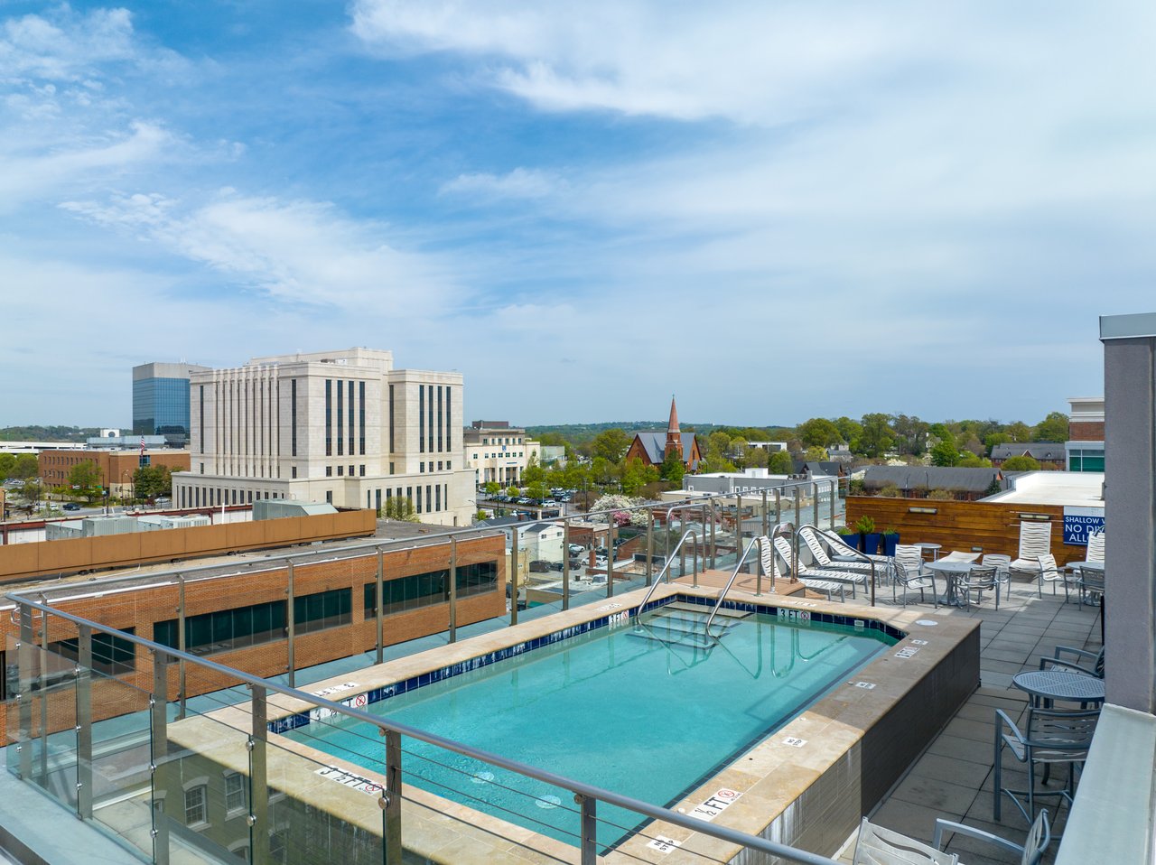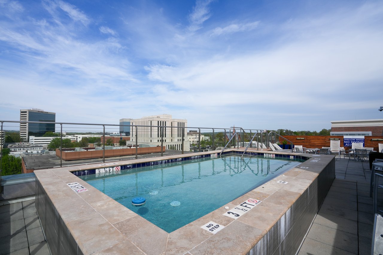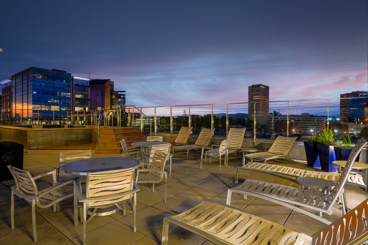 Your life in the One Hundred East community extends well beyond your front door. Take the elevator up to the private community rooftop and lounge area on the eighth floor. This spectacular space features panoramic skyline views, a pool, comfortable seating, grills, and a TV—perfect for entertaining or unwinding after a long day. The community also provides an on-site parking garage, common area maintenance, and a discount on membership to Anytime Fitness on the ground level.