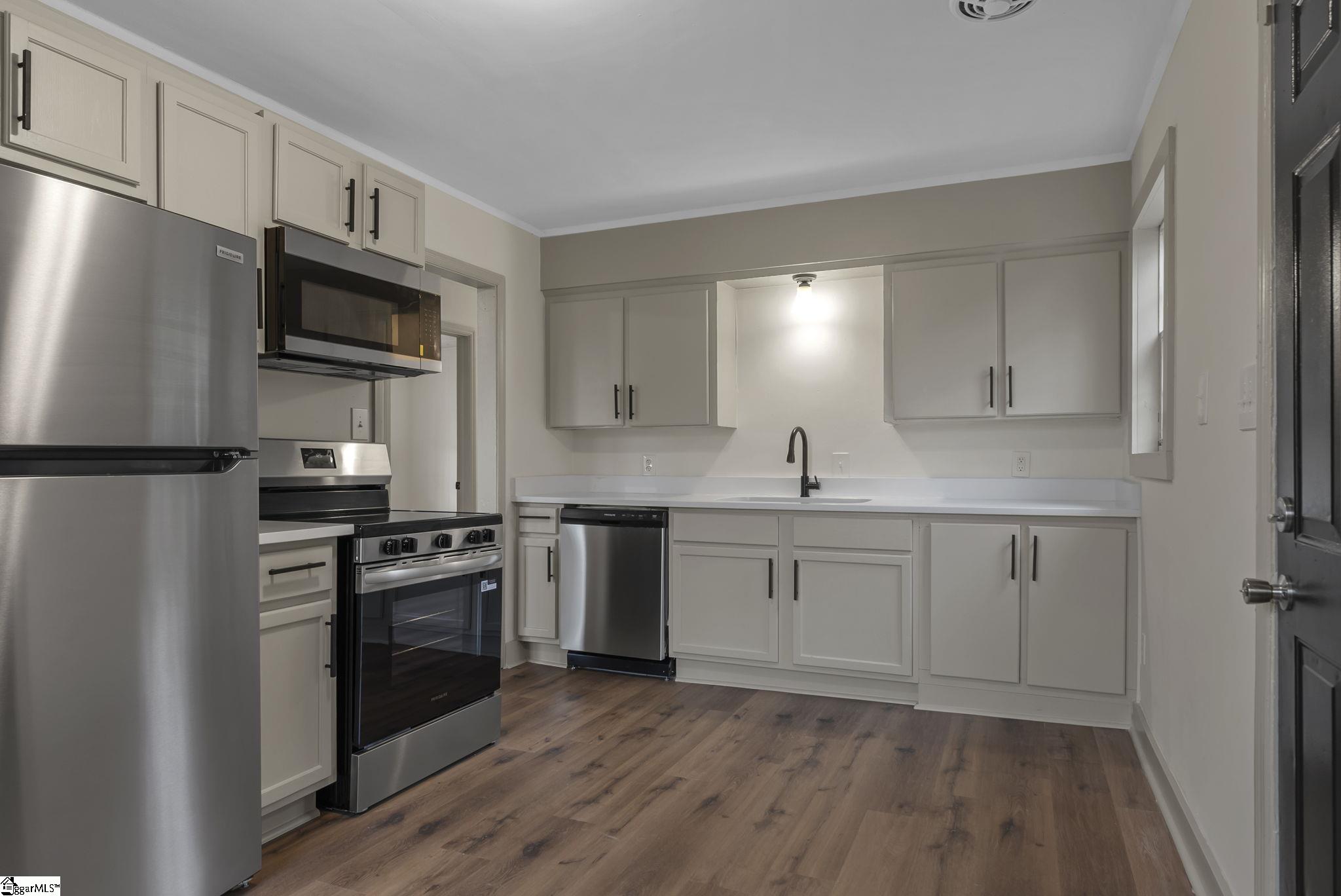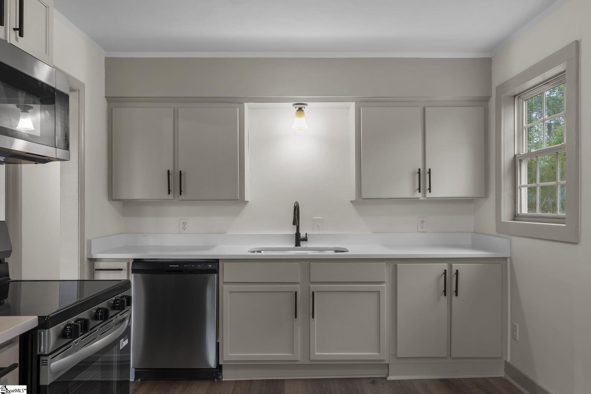 Welcome to 100 Whitener Avenue, a beautifully refreshed single-story residence situated in the highly sought-after Duncan Park community of Spartanburg. This three-bedroom, one-and-a-half-bathroom home features premium flooring, a contemporary color palette, and upgraded fixtures. The interior opens into an expansive living area designed for seamless transitions and effortless entertaining, flowing naturally into a chef-inspired kitchen. This central hub is appointed with polished quartz countertops, sleek stainless-steel appliances, and abundant cabinetry, along with a discreetly integrated laundry zone for maximum functionality. The home's thoughtful layout includes a spacious primary suite featuring a private en-suite half-bath, while the additional bedrooms share a well-appointed central bathroom finished with classic fixtures. From the kitchen, a rear entrance leads to a substantial fenced backyard, an ideal canvas for outdoor recreation, gardening, or private gatherings. Residents in the community enjoy an unparalleled location that bridges active recreation with urban convenience. The home is just a short walk from the historic Duncan Park, which offers premier tennis and pickleball courts, softball fields, and extensive walking trails. Furthermore, a brief five-minute drive places you in the vibrant center of downtown Spartanburg, providing immediate access to a curated selection of fine dining, local boutiques, and cultural attractions. Schedule your showing today!