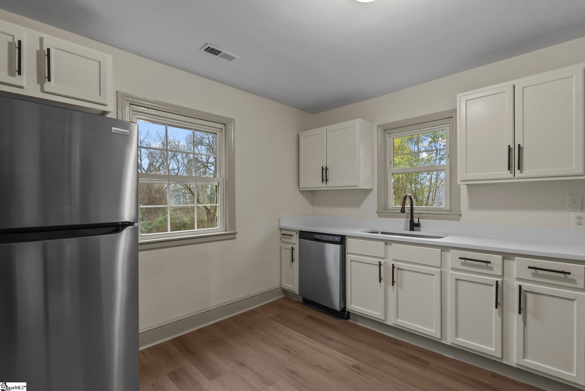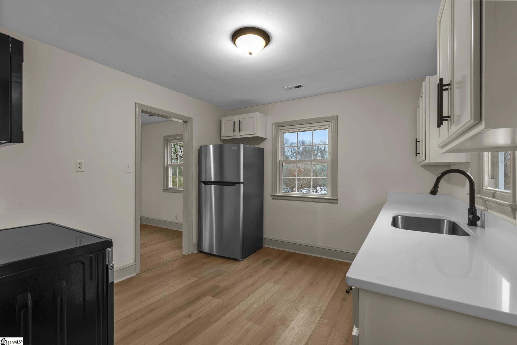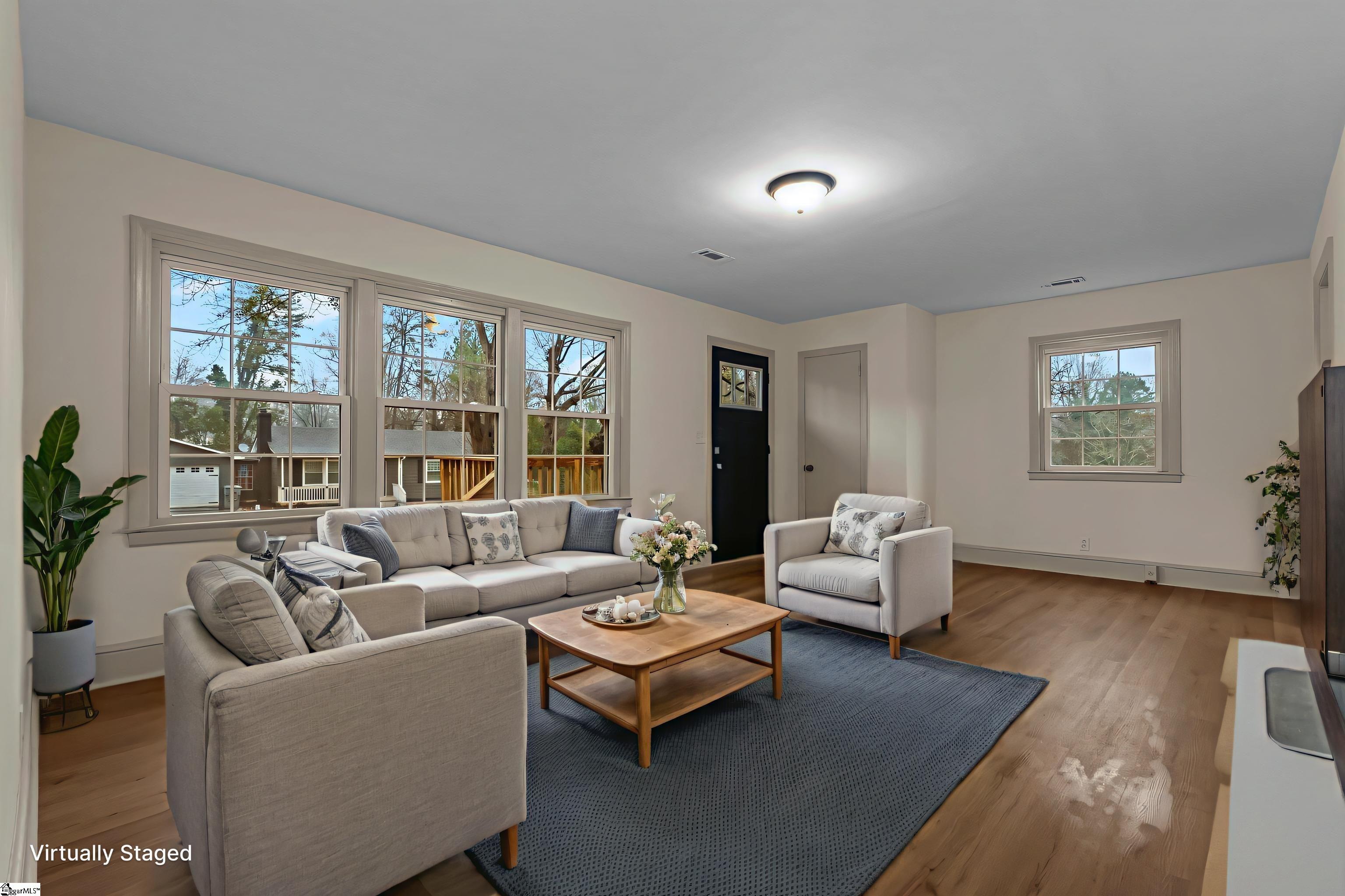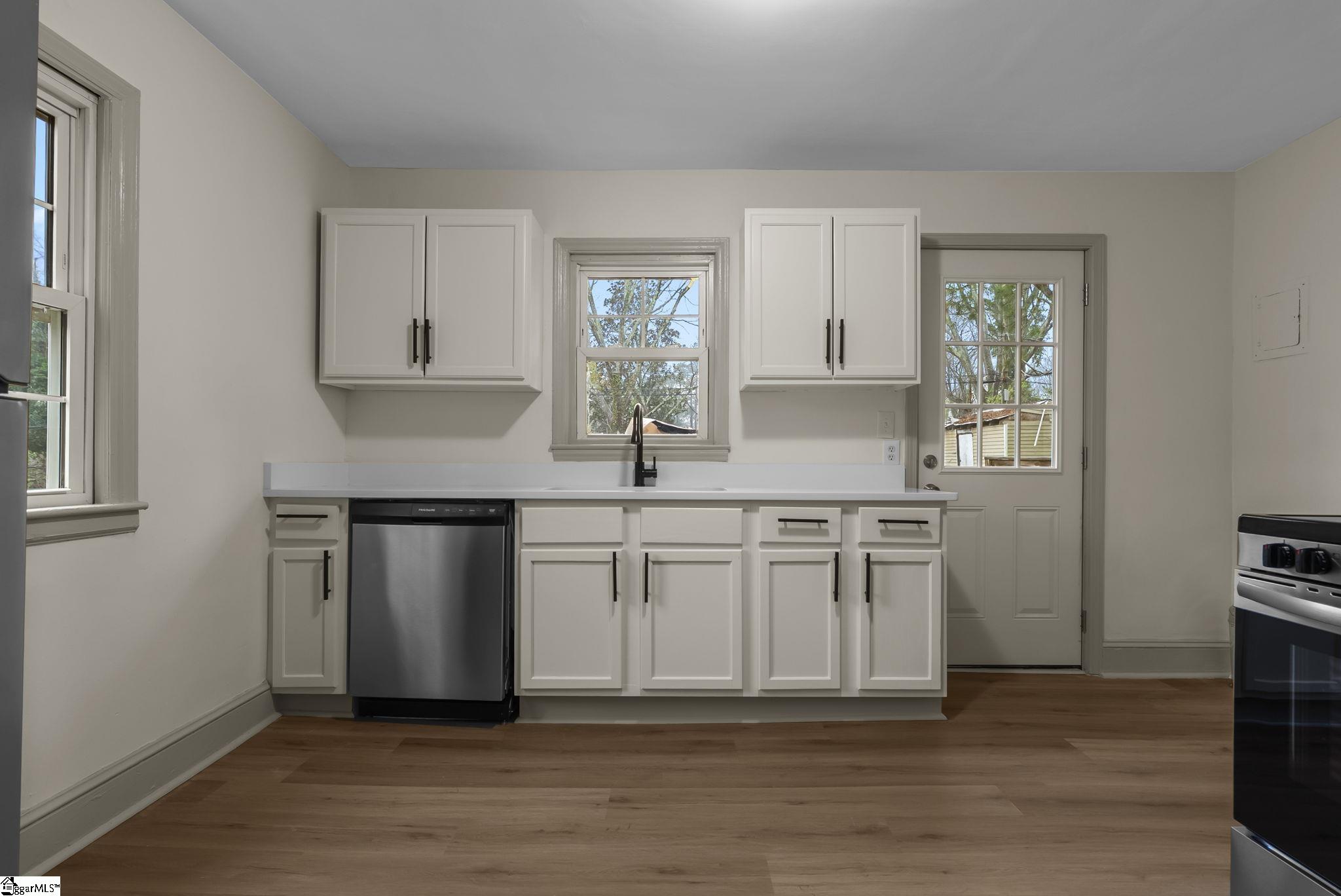 Situated on a prominent corner lot within the desirable Duncan Park community, 105 Whitener Avenue is a masterfully updated three-bedroom, one-bathroom residence that blends modern accessibility with contemporary design. This home has been renovated to offer a refined living experience, featuring a cohesive interior palette of crisp paint, upgraded fixtures, and high-performance modern flooring throughout. The heart of the residence is a light-filled kitchen designed for both style and utility, appointed with elegant quartz countertops, stainless steel appliances, and extensive cabinetry. A thoughtfully integrated laundry zone maximizes the home's footprint, while a rear door provides direct access to a private back deck. Perfect for morning coffee or alfresco dining. This elevated space overlooks an expansive, open yard that offers significant potential for landscaping or recreation. The property's location offers an exceptional balance of active outdoor living and urban proximity. Residents are just a short stroll from the recreational amenities of Duncan Park, including premier tennis and pickleball courts, softball fields, and scenic walking trails. Additionally, the vibrant cultural and commercial hub of downtown Spartanburg is a mere five-minute drive away, offering immediate access to the city's finest dining, boutiques, and entertainment. Schedule your showing today!