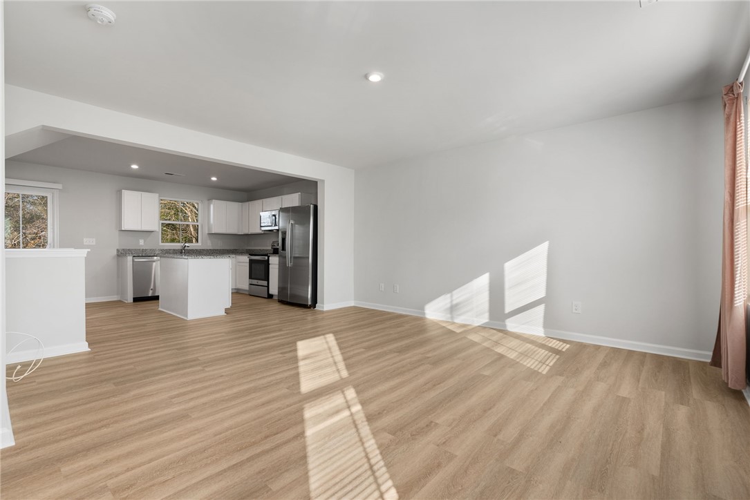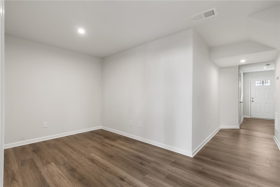 The top floor serves as a quiet retreat, housing all three bedrooms and the laundry area for ultimate convenience. The primary suite includes a private full bathroom and a generous walk-in closet. Two additional well-appointed bedrooms share a bathroom on the top level. This layout showcases ample space for family, guests, or a home office. On the ground level, an attached one-car garage features secure parking and additional storage. The foyer serves as the perfect drop zone.