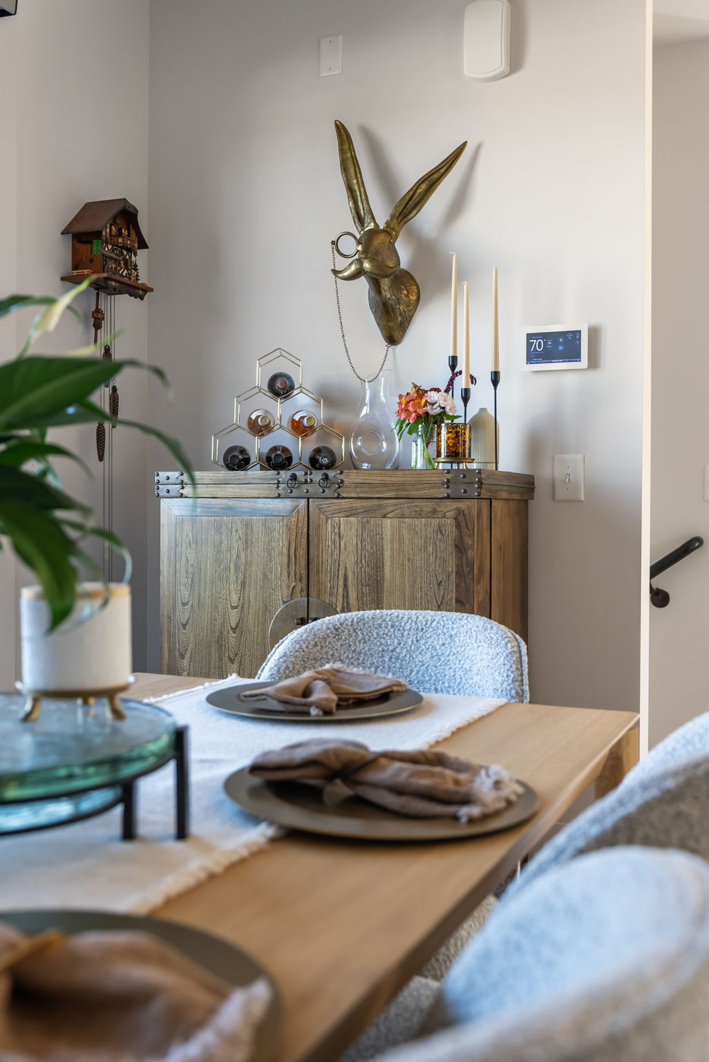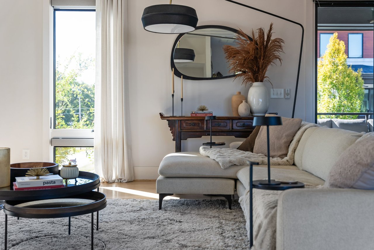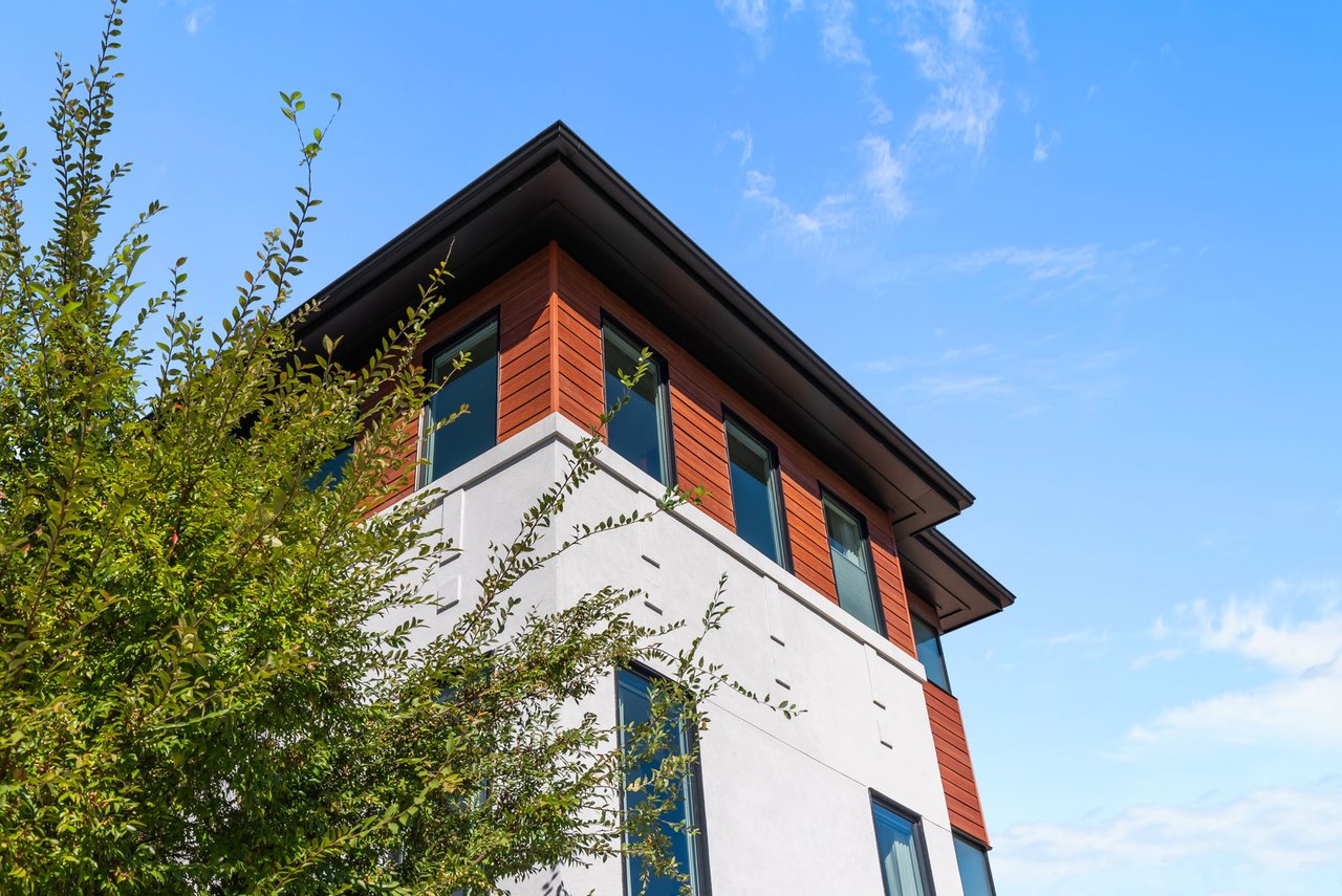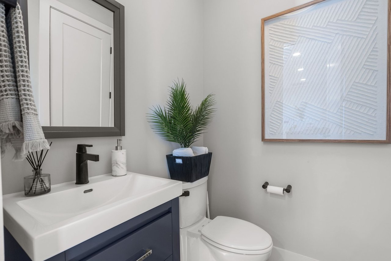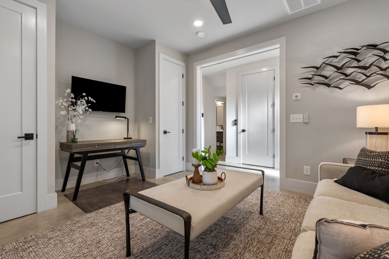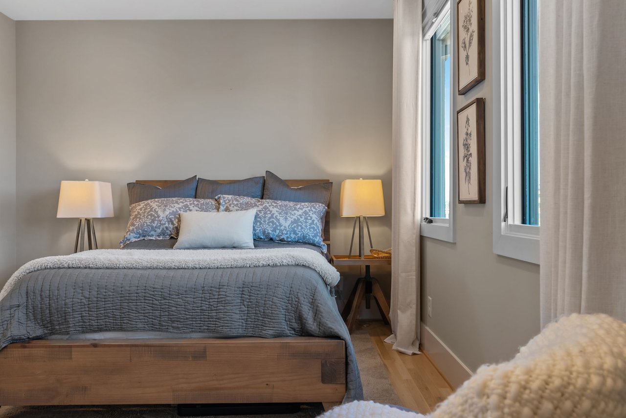 Brilliantly designed, the third floor grants residents and guests a respite and a chance to recharge before returning to the city's liveliness. The primary bedroom, situated on the corner of the unit, presents a scenic view of the neighborhood and is complete with a full bathroom and walk-in closet. The suite's generous bathroom has a dual, floating vanity, quartz countertops, large-format tile flooring, and a tile walk-in shower. The stackable laundry closet sits between the primary and guest bedrooms. Enjoy privacy in the guest suite, which has ample closet space and a full bathroom.