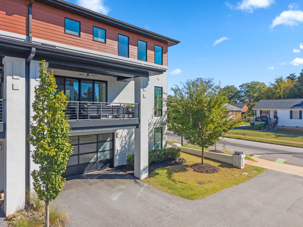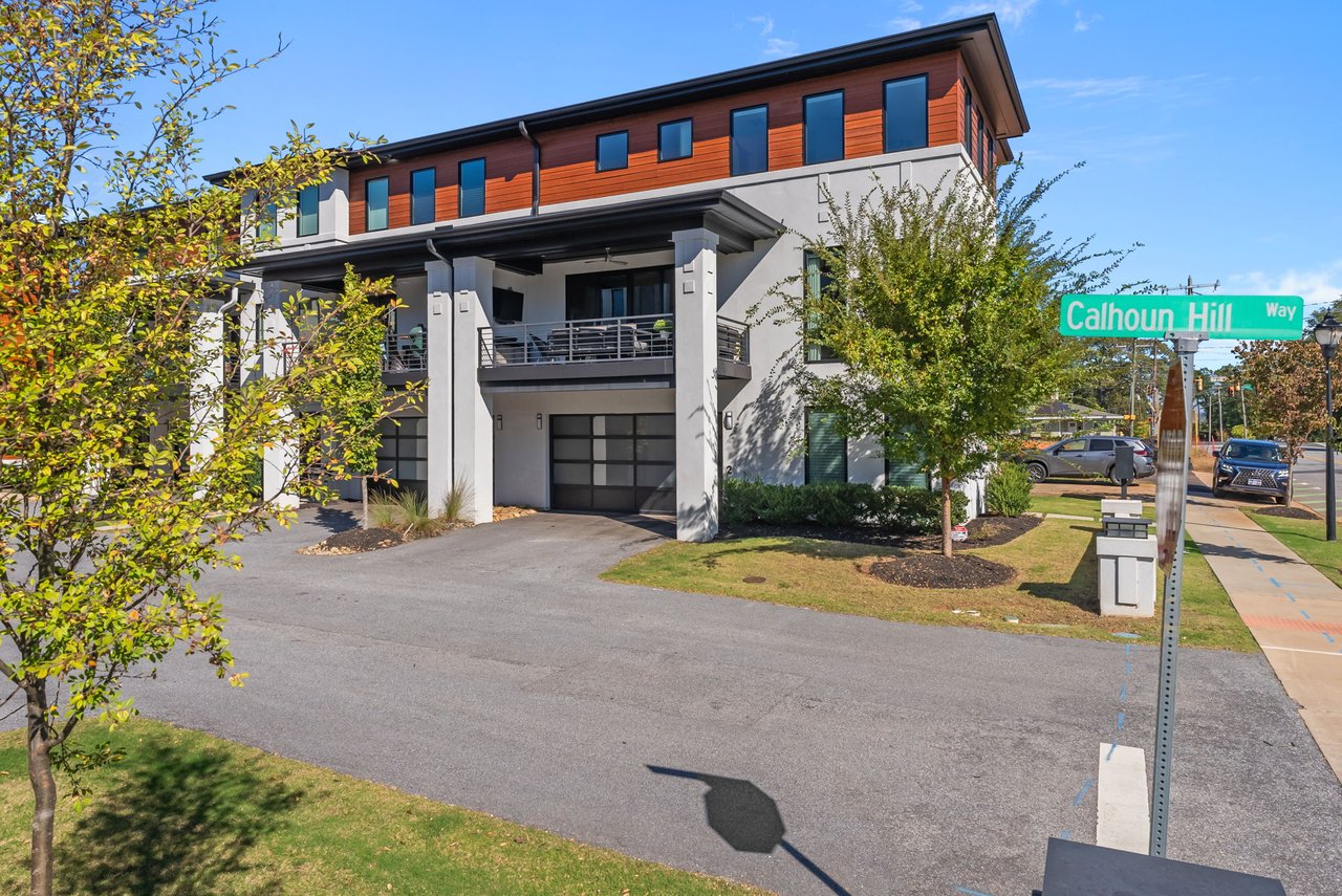 2 Calhoun Hill Way is a premier urban residence that seamlessly blends 1920s-inspired metropolitan architecture with modern, sustainable utility. This home is situated in the City Homes at Calhoun, a Cole Properties innovative townhome community in the heart of the Historic West End, providing convenient, walkable proximity to the City of Greenville's exceptional amenities. This elevator-equipped, three-story, three-bedroom, three-and-a-half-bathroom end-unit features nine-foot ceilings, a two-car garage, and dual terraces, making it a rare find, ready for its subsequent owners.