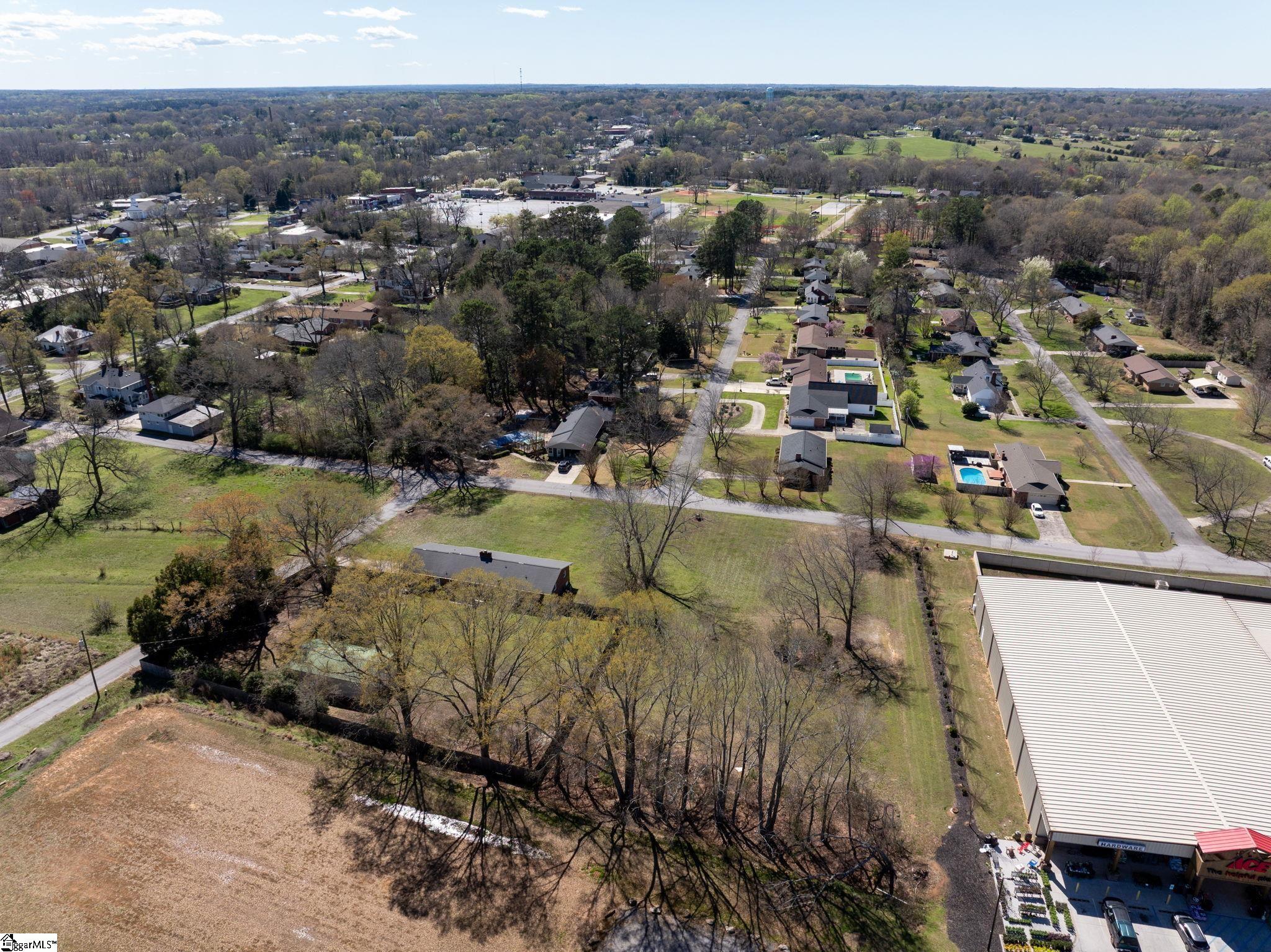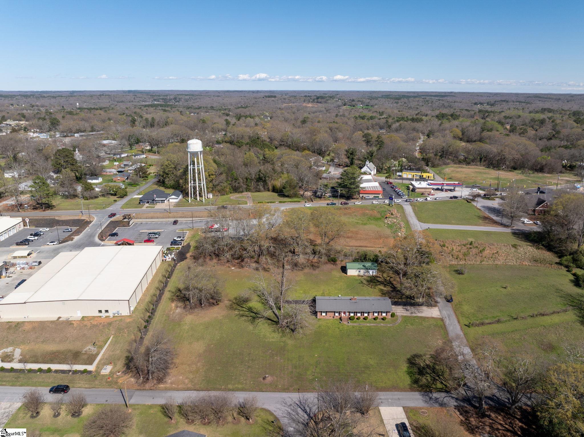 Situated on a level, 2.01-acre corner lot in Williamston, this versatile 1,750+ square-foot full brick ranch presents a strategic commercial redevelopment opportunity with immediate residential utility. Zoned RC (Residential/Commercial District), the property's value is anchored by its exceptional commercial potential, positioned directly adjacent to the newly developed Ace Hardware and capitalizing on the area's strong retail momentum. Williamston is a rapidly growing submarket within Upstate South Carolina, a region that boasts a population of over 1.6 million and has seen $4.6 billion in capital investment over the past five years. Located just 18 miles from downtown Greenville, this site sits at a highly visible commercial nexus. Positioned just off E. Main St. (11,300 VPD) and N. Hamilton St. (4,100 VPD), the property benefits from dominant local traffic patterns, providing an essential and highly visible footprint for regional retail or multi-family developers. The classic brick exterior is protected by an architectural shingle roof and features updated tilt-in windows, newer exterior vinyl boxing, gutters, and shutters. Inside, the layout provides excellent versatility with a formal living room, a dedicated office space, and a den anchored by a wood-burning fireplace. Showcasing the floor plan's adaptability, the formal dining room is currently partitioned with temporary walls to serve as an additional private suite. This space can be seamlessly reverted to its original open configuration. Hardwood floors run throughout the main living areas, hallways, and bedrooms. Practical features include a primary suite with a full bath, a heated laundry room, and a two-car garage with an integrated storage room. Major systems are well-maintained, highlighted by a primary HVAC unit installed in July 2024, supplemental independent heating in the laundry room, and recent comprehensive chimney maintenance. Unrestricted by an HOA and positioned with convenient interstate access, the 2.01-acre site features a partially fenced yard and an expansive, 800+ square-foot powered workshop. This outbuilding provides an immediate operational footprint for a small business, studio, or significant equipment storage. Whether leveraged for its commercial "highest and best use" as a development pad or utilized as an expansive live-work compound, this property delivers uncompromising utility and strategic market positioning.