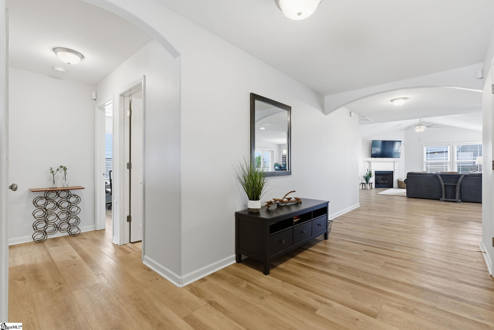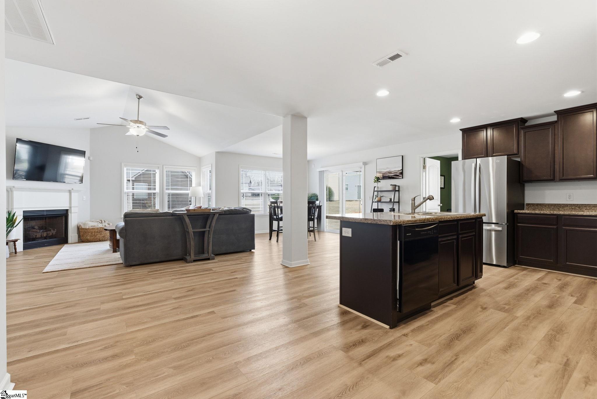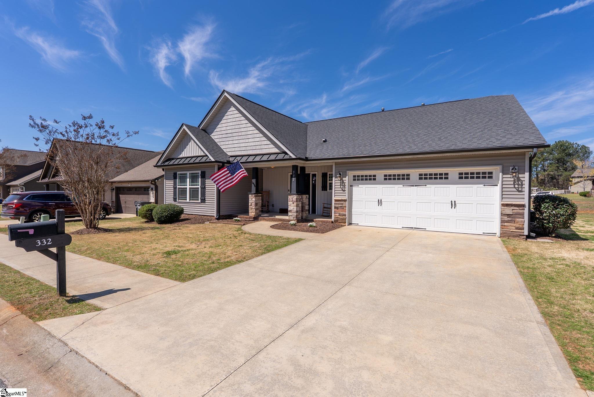 Discover modern comfort and effortless style at 332 Terilyn Court, nestled in the sought-after Stalling Heights subdivision. This thoughtfully designed single-story home offers spacious living with a focus on low maintenance, just ten minutes from downtown Greenville. Step inside to find an airy open-concept layout anchored by a cozy gas-log fireplace, perfect for both intimate nights in and entertaining guests. Recent renovations, including stunning new flooring, fresh interior paint, and updated fixtures, create a bright, move-in-ready ambiance throughout. The chef-inspired kitchen boasts a large central island, granite countertops, and abundant cabinetry, seamlessly connecting to the formal dining area. The primary suite is a tranquil retreat, complete with a jetted tub, separate walk-in shower, and an expansive walk-in closet. Two additional bedrooms are privately situated, and a versatile bonus room adapts easily as a home office, gym, or guest suite. Outdoors, enjoy a spacious, level lot ideal for recreation, and unwind under the covered patio. With thoughtful design, fresh upgrades, and a prime location, this home is ready for you to move in and enjoy.