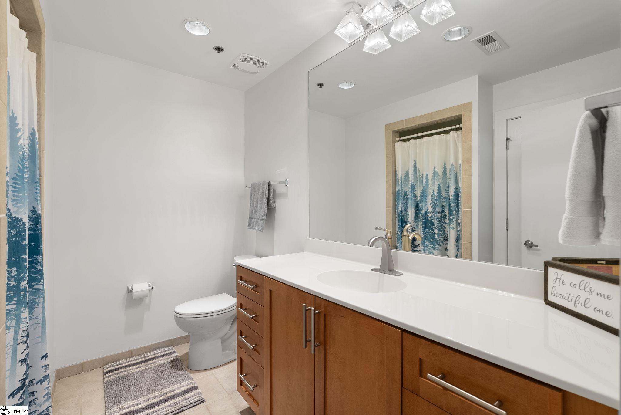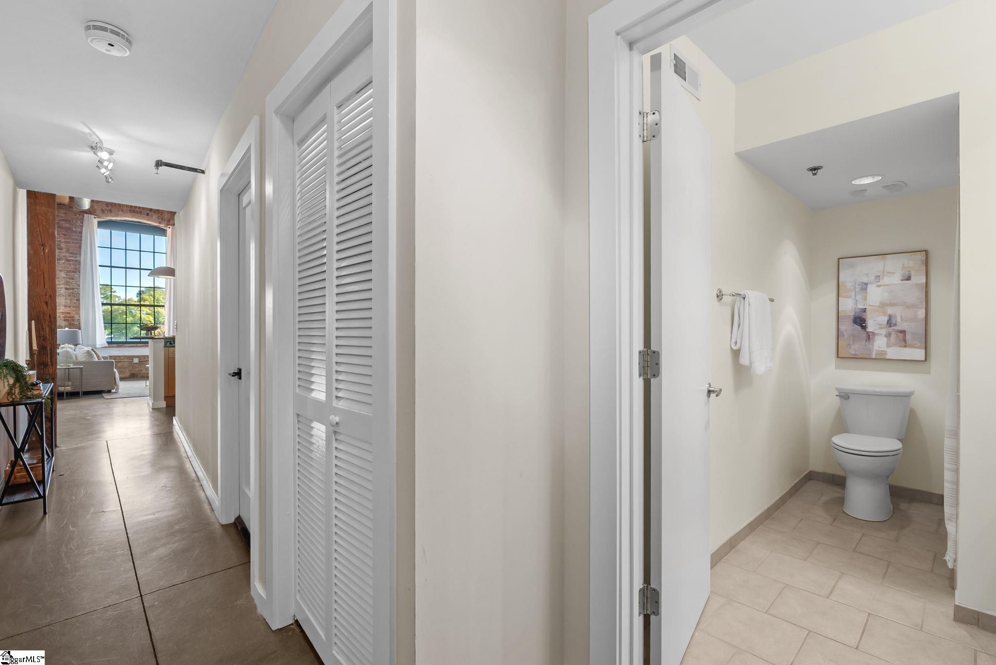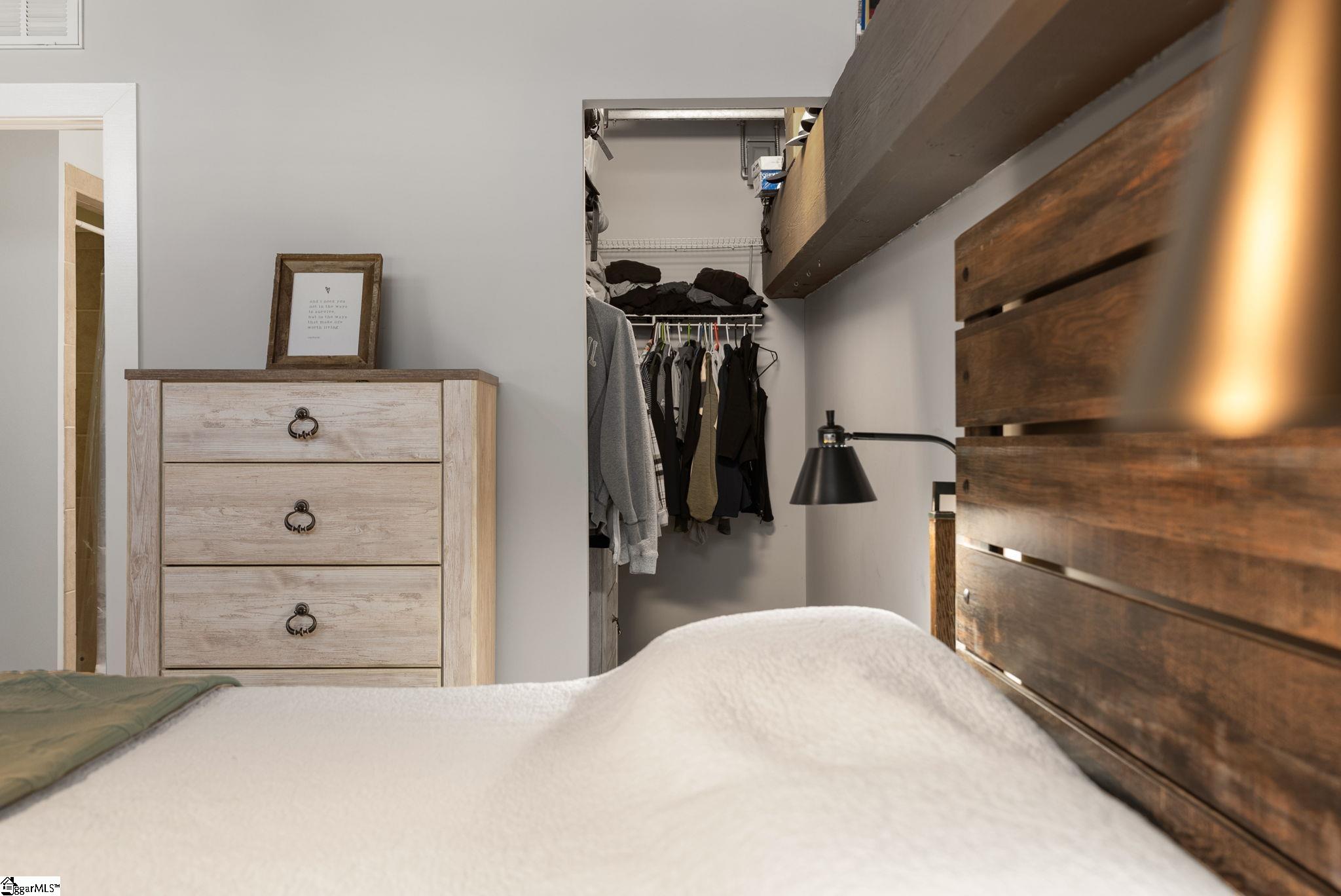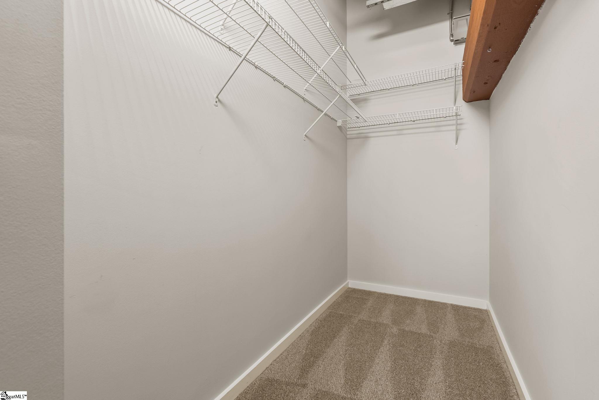 Experience breathtaking top-floor views from this elegant downtown residence within Greenville's historic Lofts at Mills Mill, a distinctive and nationally registered historic landmark originally built in the 1920's as a textile mill and masterfully renovated in 2004, meticulously preserving its unique architectural character. The community's common areas immediately set a tone of sophisticated urban ambiance, featuring preserved exposed brick, warm heart of pine ceilings, and polished concrete floors. This condominium is a superb two-bedroom, two-full-bathroom layout, defined by a stunning two-story entertaining space on the main level with soaring ceilings, expansive windows that fill the area with light, and the building's signature brick details. The residence presents a pristine condition, featuring brand new carpeting and freshly painted walls throughout. Seamlessly blending industrial roots with modern functionality, the kitchen is tastefully updated with sleek granite countertops, stainless steel appliances, and a gas stove. The primary suite is a private lofted retreat, while both full bathrooms boast fully tiled showers, and the primary bath includes a relaxing soaking tub. This residence combines exceptional style with convenience, offering generous storage and a new stackable washer and dryer included, and the ownership experience is further enhanced by a comprehensive HOA that covers water, natural gas, pest control, trash removal, and building maintenance. Community amenities enrich the lifestyle with a swimming pool, fitness center, large dog park, secure gated parking, outdoor grilling areas, a community fire pit, and beautiful gardens, all strategically located just off Augusta Road and near major hospitals, offering exceptional urban living in a revered historic setting.