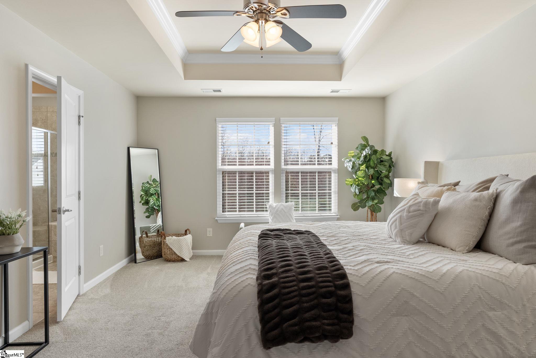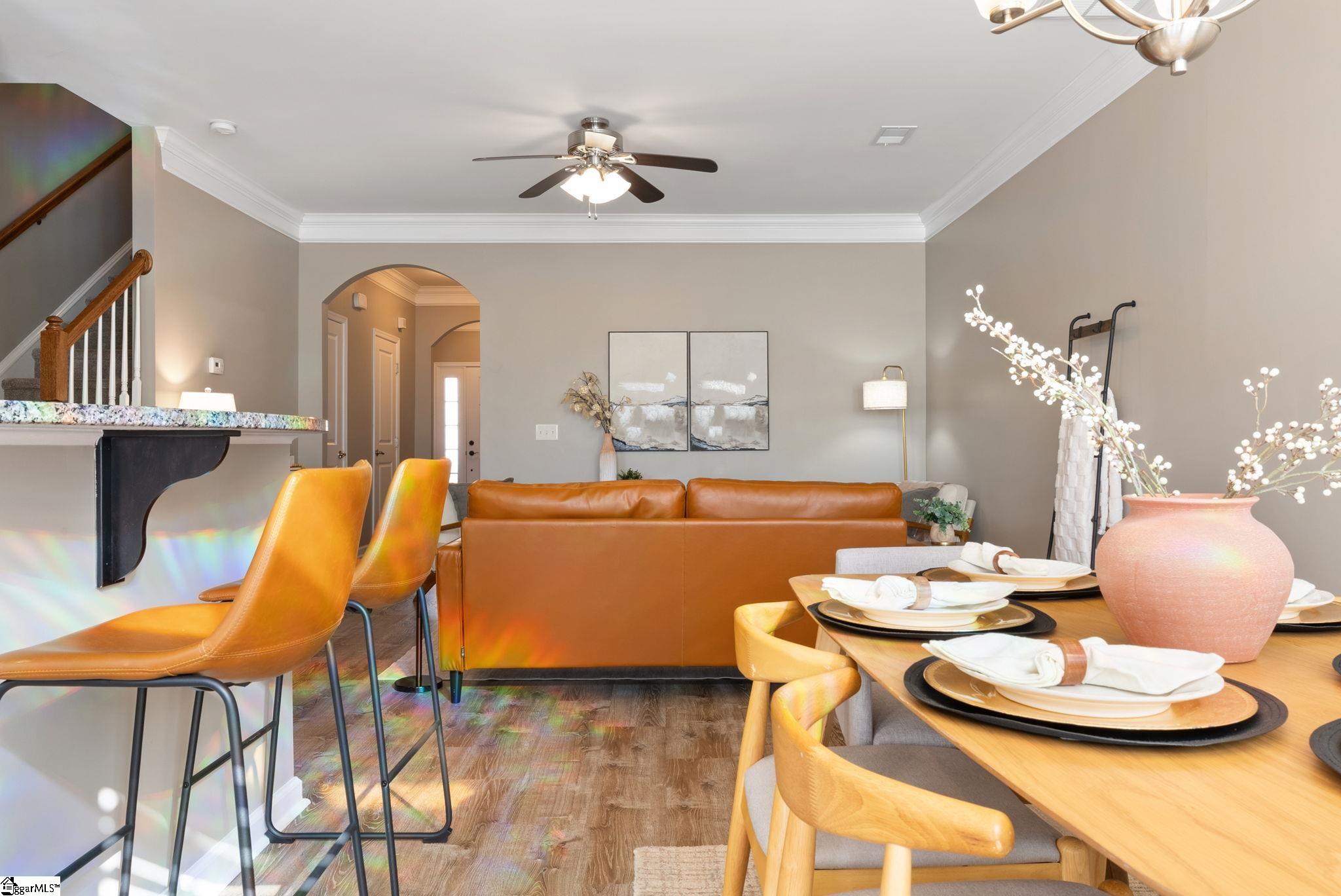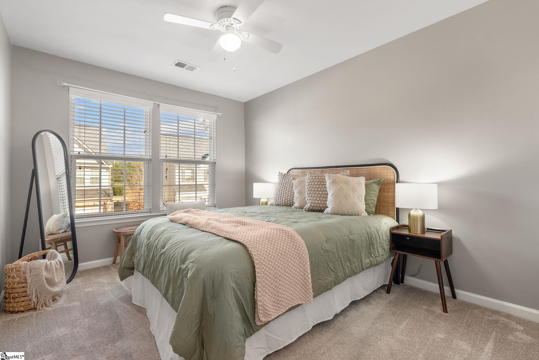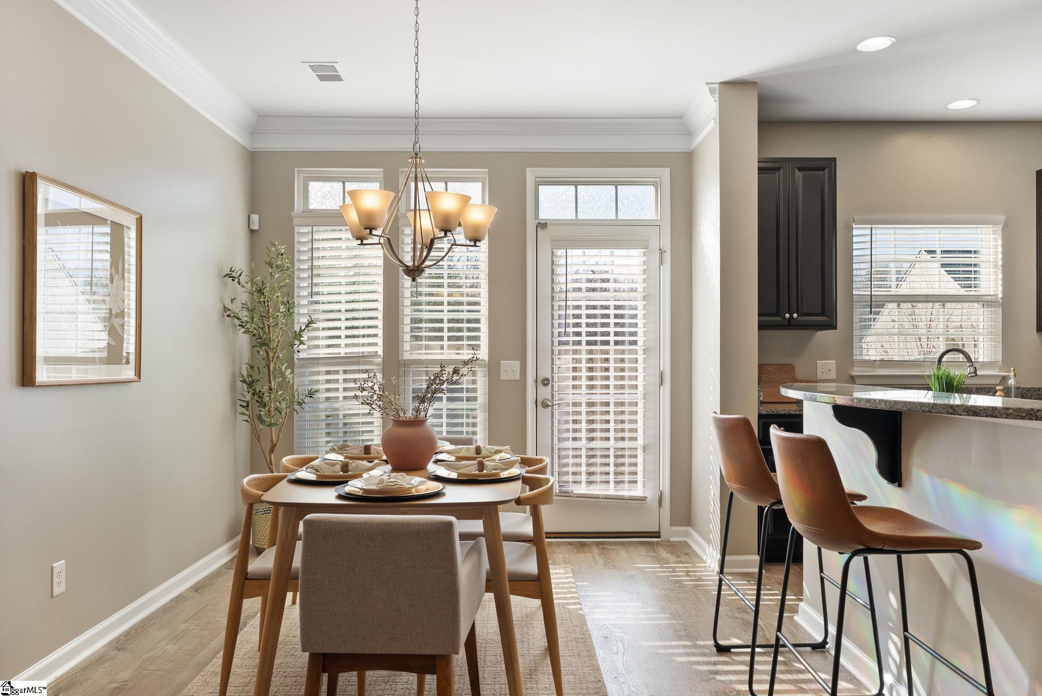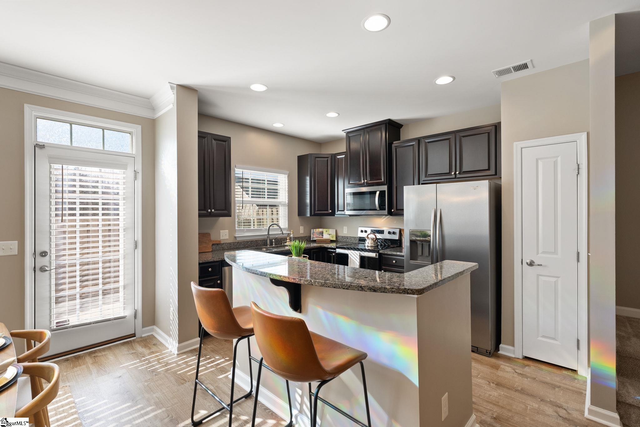 Located in the Townes at Cardinal Creek, 454 Christiane Way presents a refined three-bedroom, two-and-a-half-bath townhome designed for efficient living. The interior features a kitchen equipped with granite countertops, extensive cabinetry, a stainless steel appliance suite, and a center island with bar-height seating. Upstairs, the primary suite features a tray ceiling, a tiled shower, a dual vanity, and a substantial walk-in closet, with the laundry area conveniently located nearby. Externally, the property provides an attached one-car garage, driveway parking, and access to neighborhood overflow spaces. Residents utilize a secluded, partially fenced patio, with direct access to the community nature trail and dog park. The HOA covers trash pickup and lawn care, while a one-year leasing restriction fosters a stable environment of owner-occupants. Strategic positioning ensures immediate connectivity to I-85 and I-385. The residence is minutes from Mauldin, Bridgeway Station, Conestee Park, and retail corridors along Woodruff Rd. Downtown Simpsonville and Downtown Greenville are easily accessible for dining and entertainment.