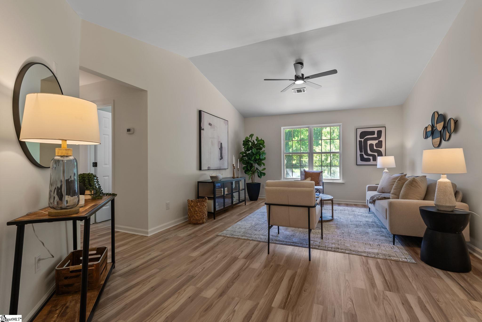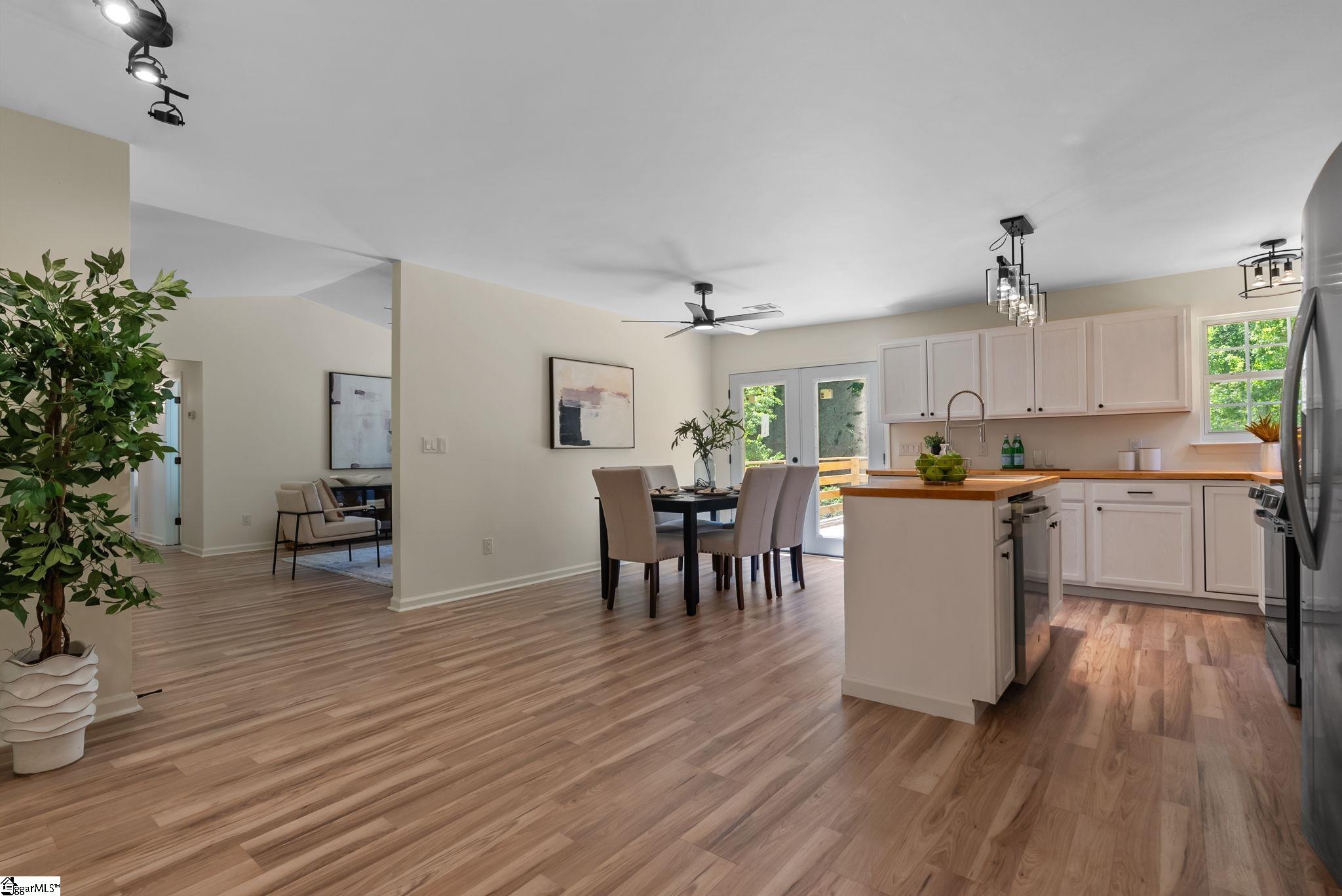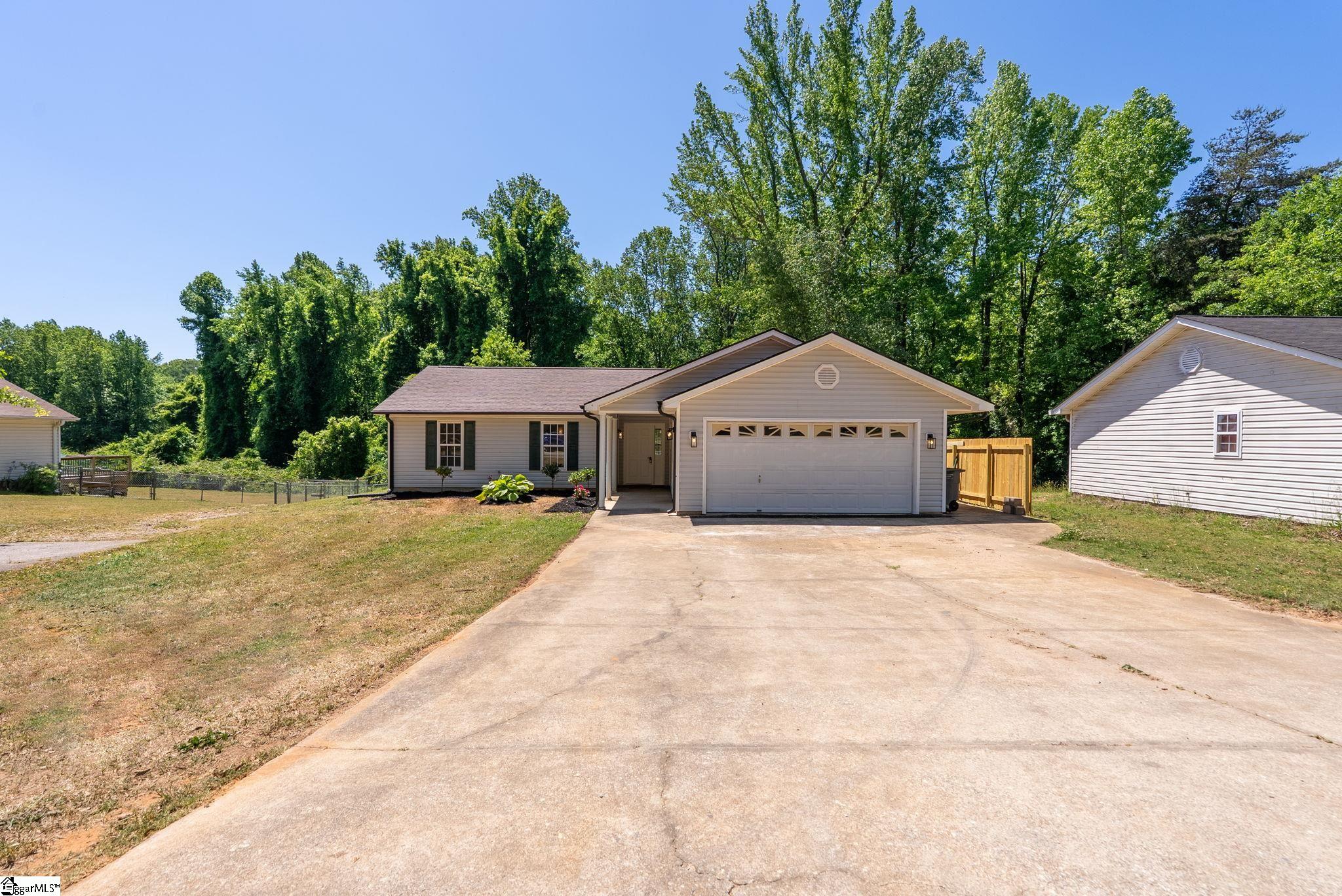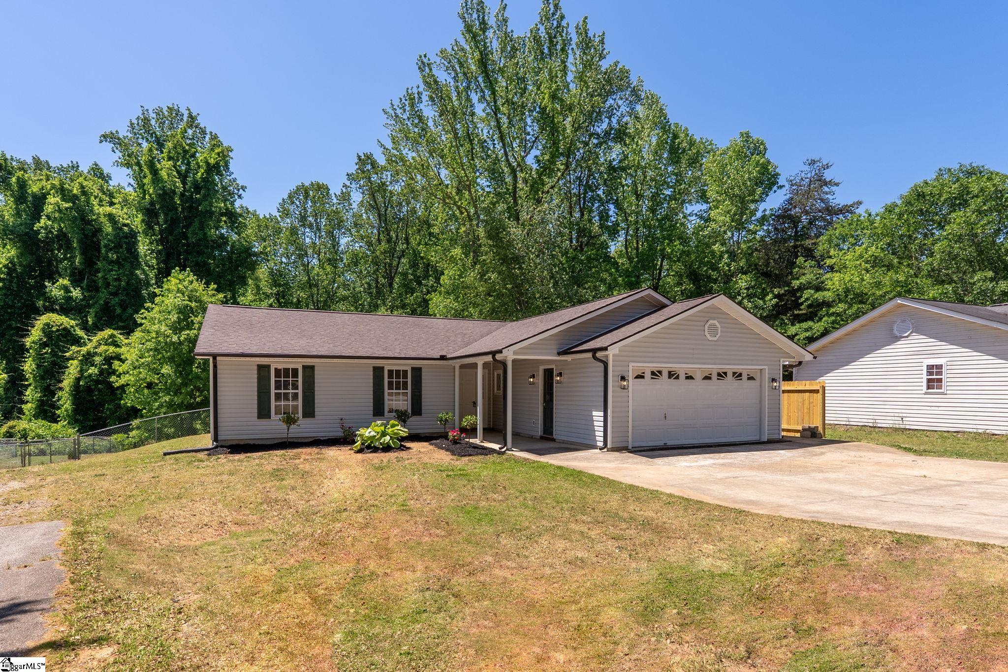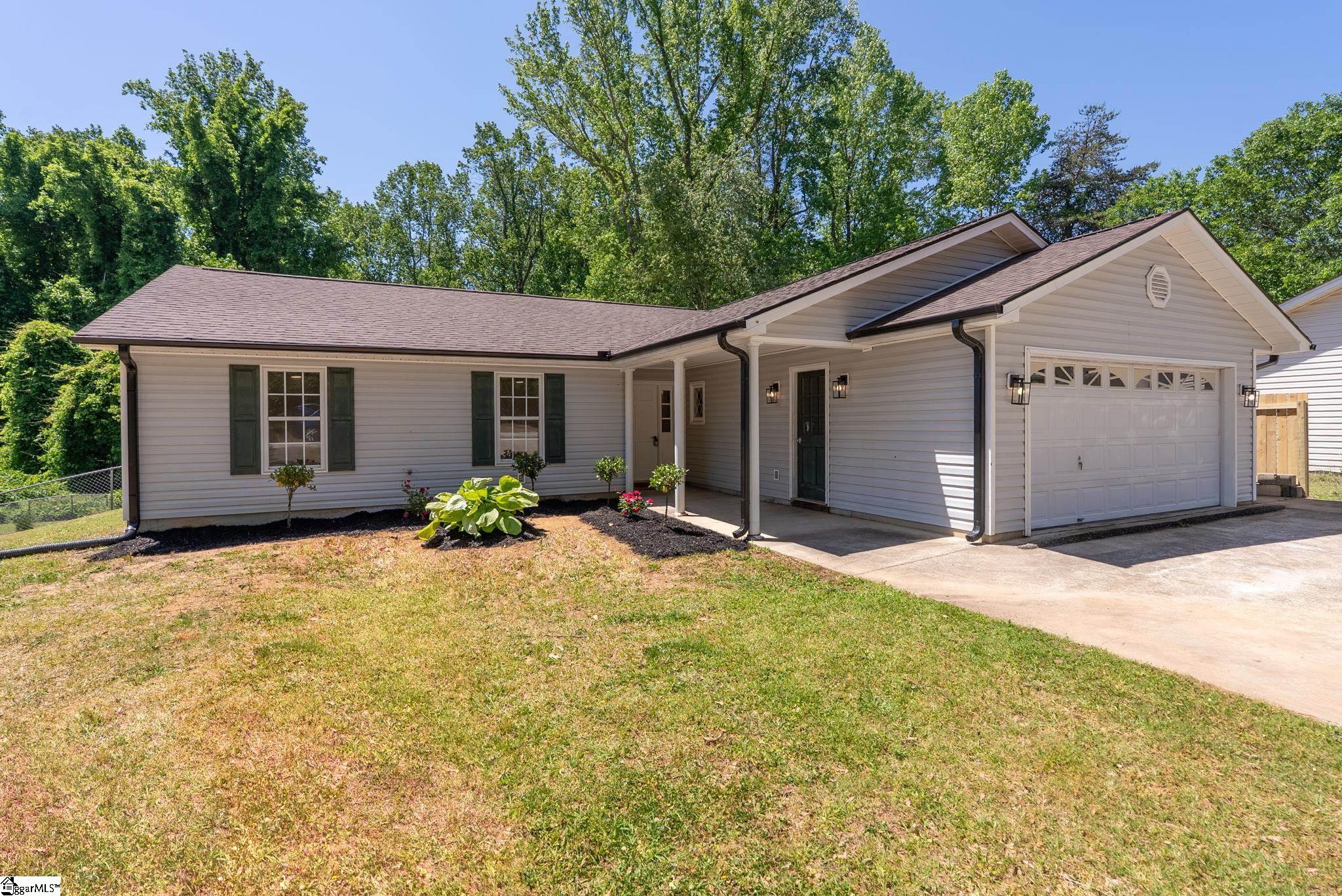 Welcome to 7 Stadium Dr., a stunningly renovated single-family home perfectly situated in the desirable Piedmont Park area. From the moment you step into the foyer, you are greeted by an expansive living room with vaulted ceilings and an abundance of natural light, highlighting the brand-new LVP flooring that flows throughout the entire home. The heart of this residence is the beautifully updated kitchen, a chef's dream boasting elegant butcher block countertops, ample cabinetry, and sleek stainless steel appliances. A functional center island serves as a focal point, while large windows offer a bright, airy atmosphere. For seamless indoor-outdoor living, the kitchen and dining area provide direct access to a spacious back deck, perfect for morning coffee or weekend gatherings. The thoughtful layout places the primary suite on one side of the home, offering a private retreat complete with a modern vanity and a walk-in shower. Two additional well-appointed bedrooms are located nearby, sharing a stylish full bathroom. This home also features a versatile bonus room, ideal for an additional bedroom, quiet home office or additional storage, and an attached two-car garage for ultimate convenience. Located just moments from the scenic Herdklotz Park and top-rated Wade Hampton High School, you'll enjoy easy access to the vibrant retail corridor along Wade Hampton Boulevard and a short, easy drive to the award-winning dining and entertainment of downtown Greenville.