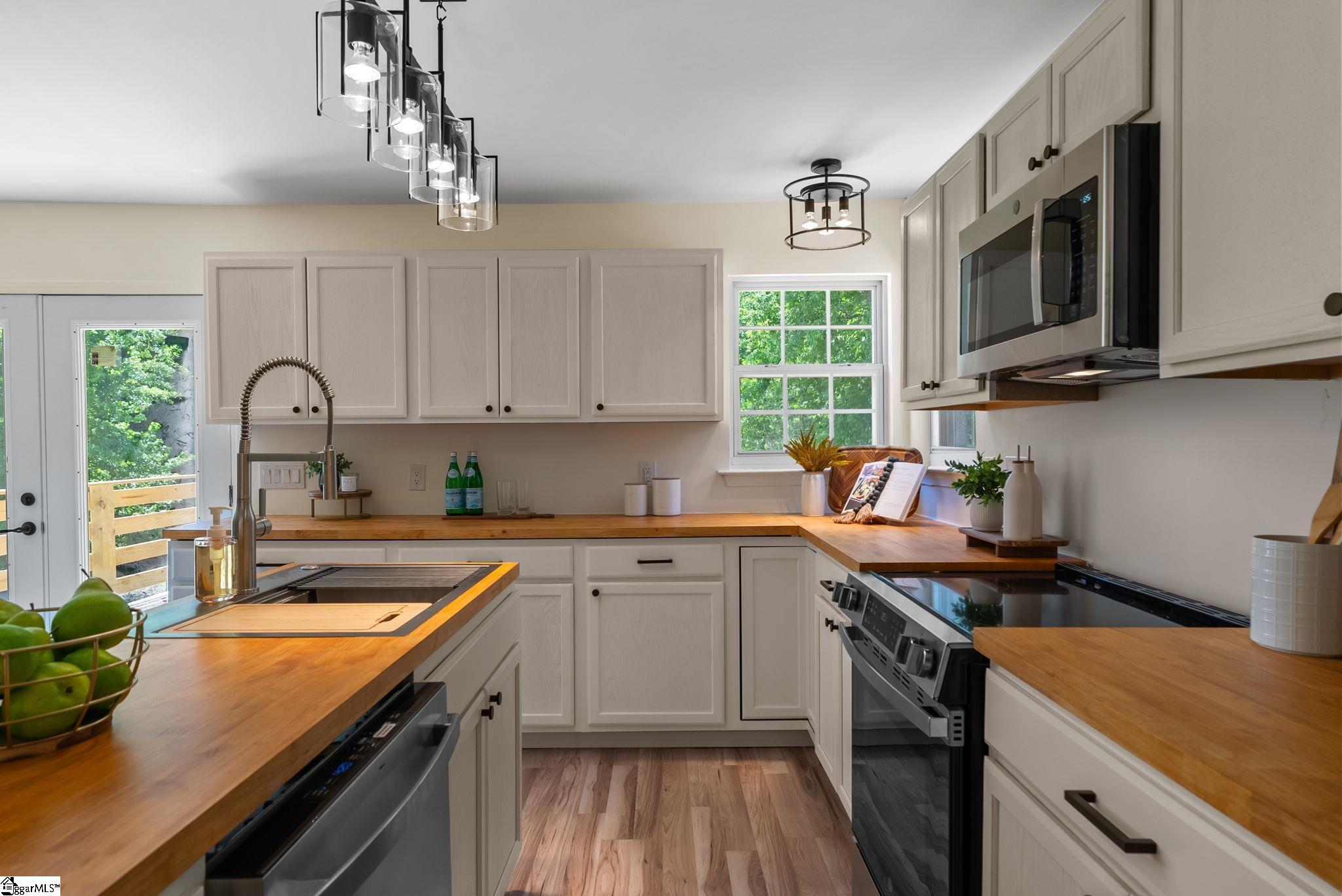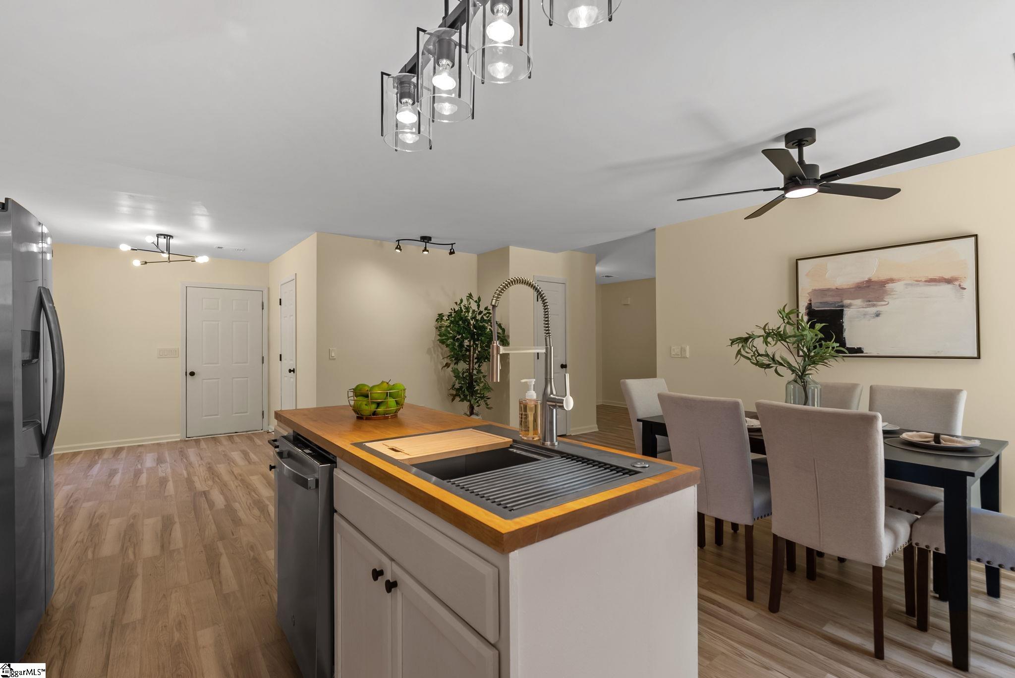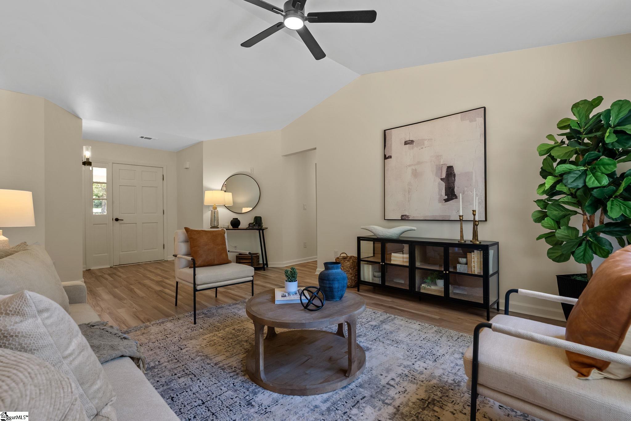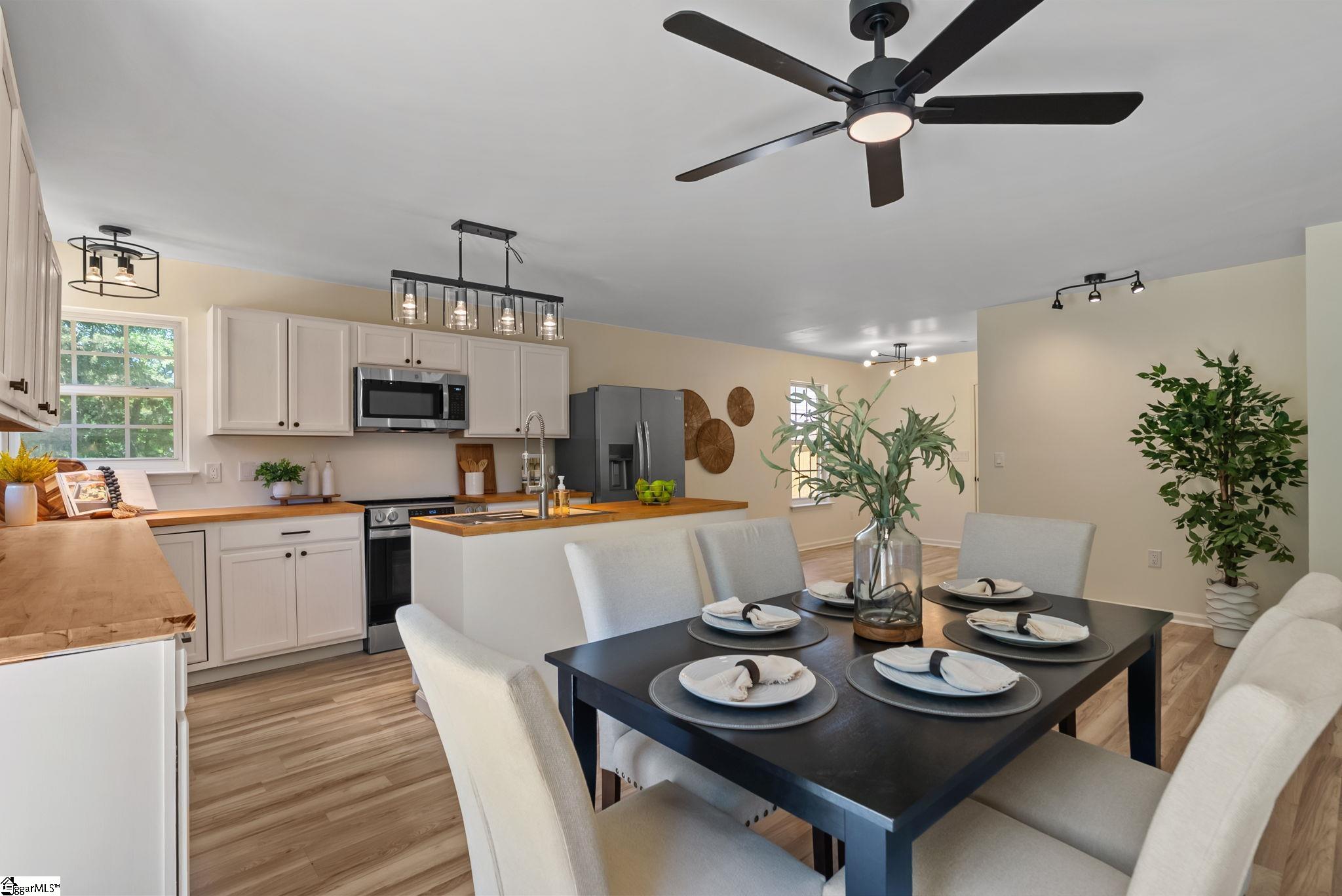 Welcome to 7 Stadium Dr., a stunningly renovated single-family home perfectly situated in the desirable Piedmont Park area. From the moment you step into the foyer, you are greeted by an expansive living room with vaulted ceilings and an abundance of natural light, highlighting the brand-new LVP flooring that flows throughout the entire home. The heart of this residence is the beautifully updated kitchen, a chef's dream boasting elegant butcher block countertops, ample cabinetry, and sleek stainless steel appliances. A functional center island serves as a focal point, while large windows offer a bright, airy atmosphere. For seamless indoor-outdoor living, the kitchen and dining area provide direct access to a spacious back deck, perfect for morning coffee or weekend gatherings. The thoughtful layout places the primary suite on one side of the home, offering a private retreat complete with a modern vanity and a walk-in shower. Two additional well-appointed bedrooms are located nearby, sharing a stylish full bathroom. This home also features a versatile bonus room, ideal for an additional bedroom, quiet home office or additional storage, and an attached two-car garage for ultimate convenience. Located just moments from the scenic Herdklotz Park and top-rated Wade Hampton High School, you'll enjoy easy access to the vibrant retail corridor along Wade Hampton Boulevard and a short, easy drive to the award-winning dining and entertainment of downtown Greenville.