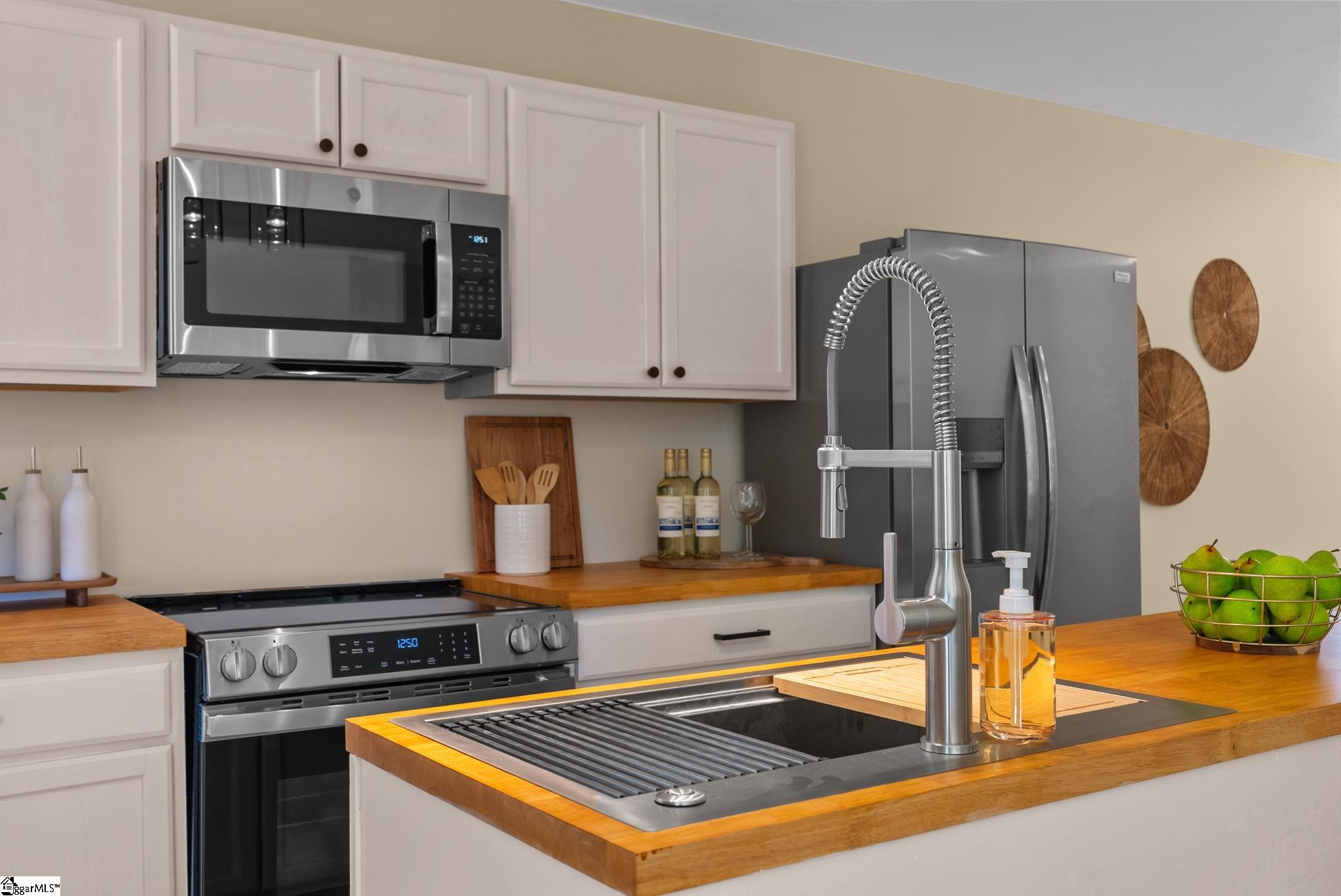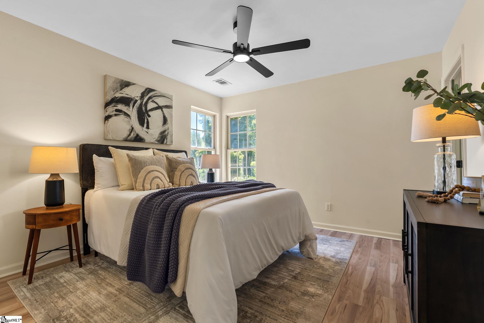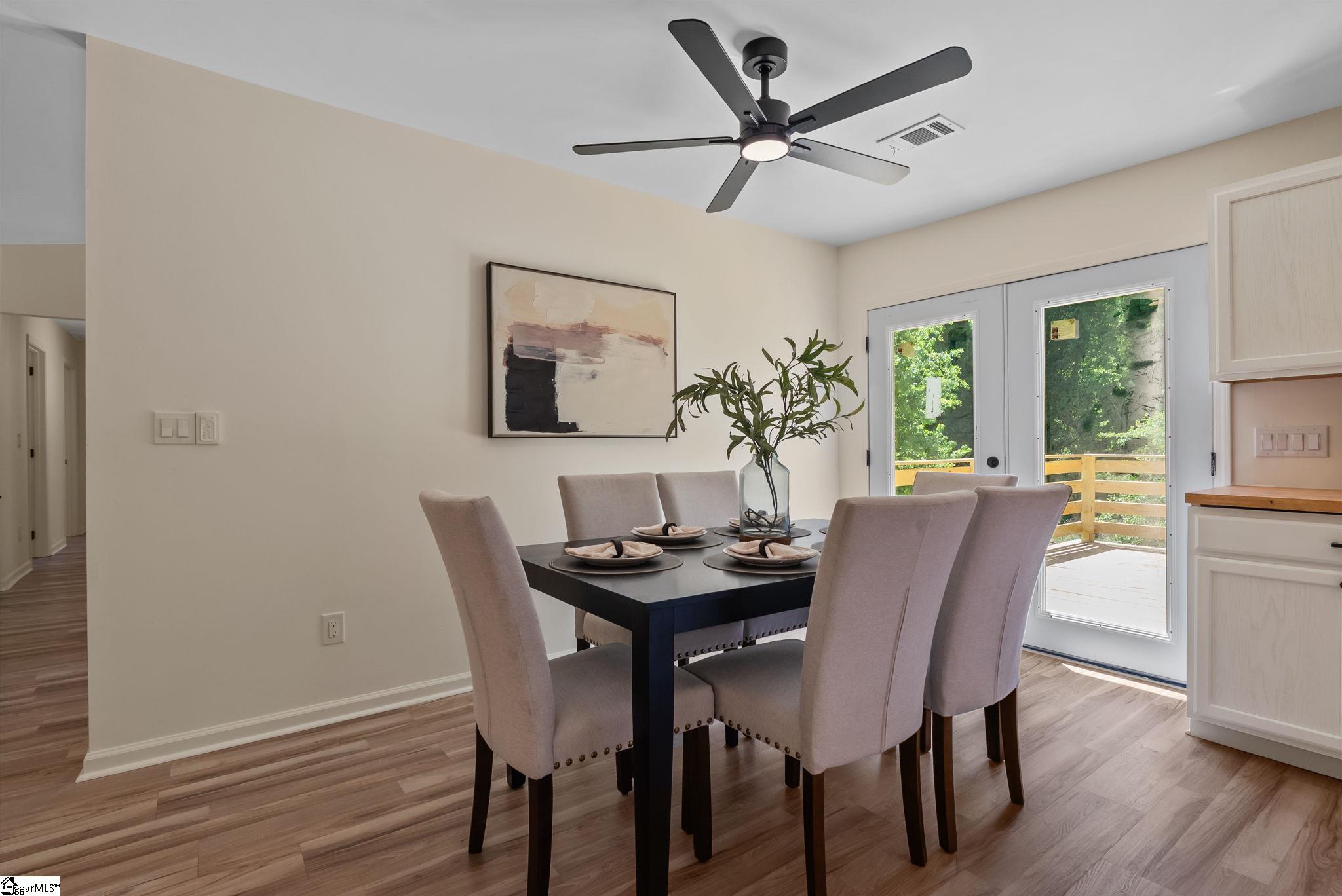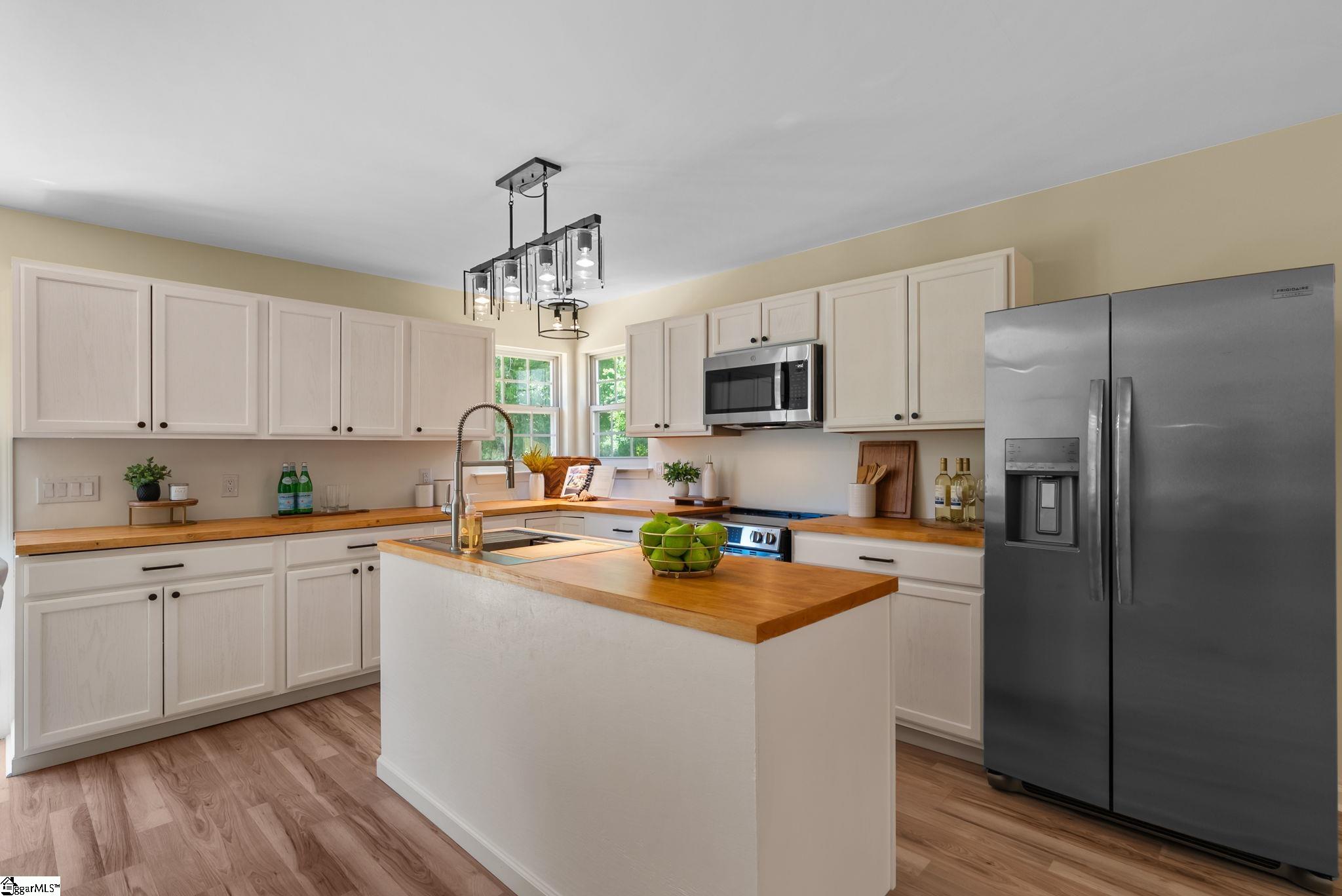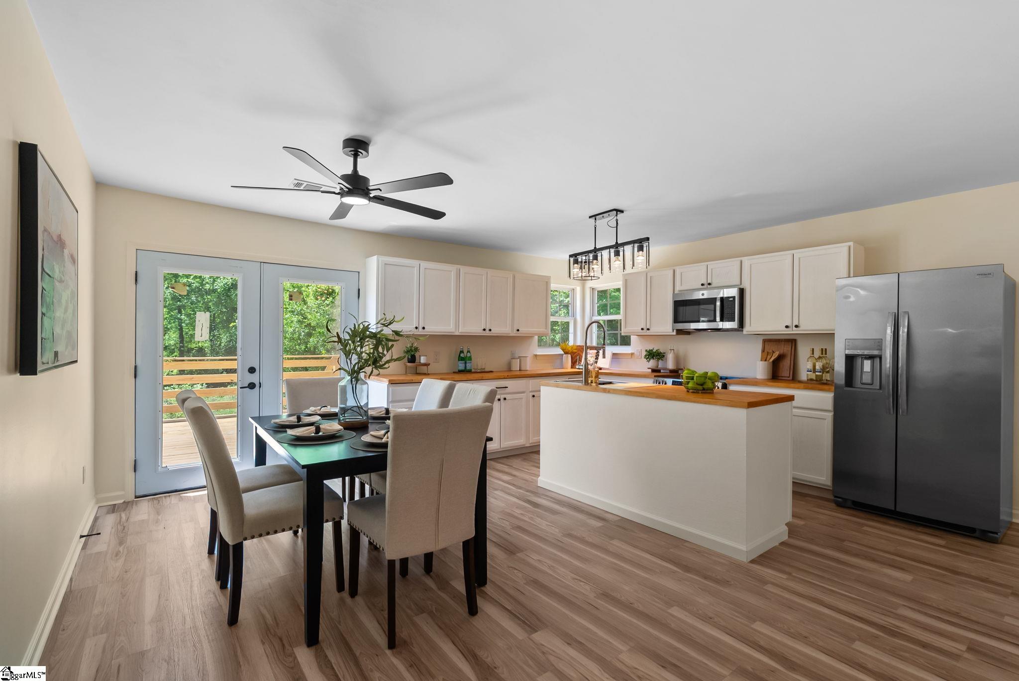 Welcome to 7 Stadium Dr., a stunningly renovated single-family home perfectly situated in the desirable Piedmont Park area. From the moment you step into the foyer, you are greeted by an expansive living room with vaulted ceilings and an abundance of natural light, highlighting the brand-new LVP flooring that flows throughout the entire home. The heart of this residence is the beautifully updated kitchen, a chef's dream boasting elegant butcher block countertops, ample cabinetry, and sleek stainless steel appliances. A functional center island serves as a focal point, while large windows offer a bright, airy atmosphere. For seamless indoor-outdoor living, the kitchen and dining area provide direct access to a spacious back deck, perfect for morning coffee or weekend gatherings. The thoughtful layout places the primary suite on one side of the home, offering a private retreat complete with a modern vanity and a walk-in shower. Two additional well-appointed bedrooms are located nearby, sharing a stylish full bathroom. This home also features a versatile bonus room, ideal for an additional bedroom, quiet home office or additional storage, and an attached two-car garage for ultimate convenience. Located just moments from the scenic Herdklotz Park and top-rated Wade Hampton High School, you'll enjoy easy access to the vibrant retail corridor along Wade Hampton Boulevard and a short, easy drive to the award-winning dining and entertainment of downtown Greenville.