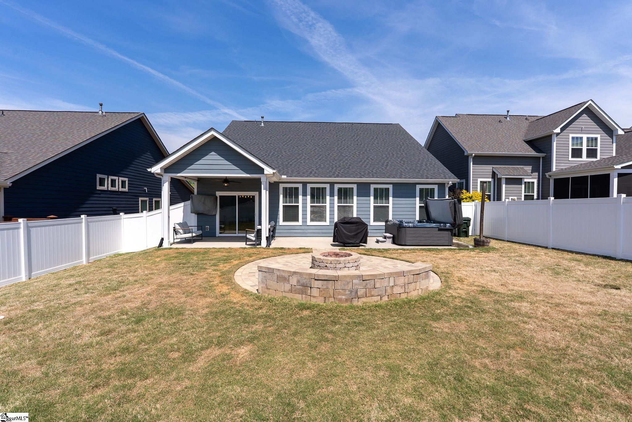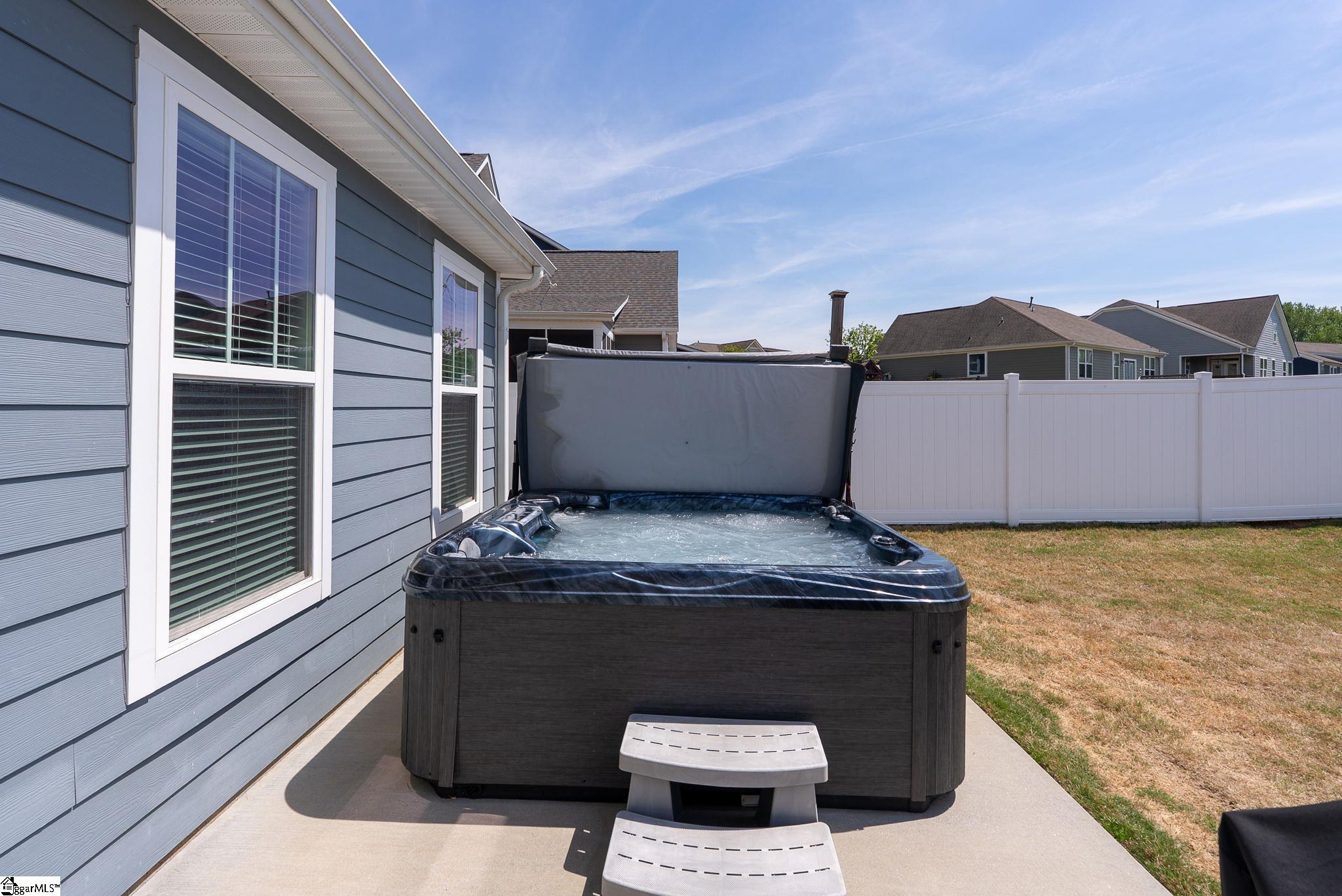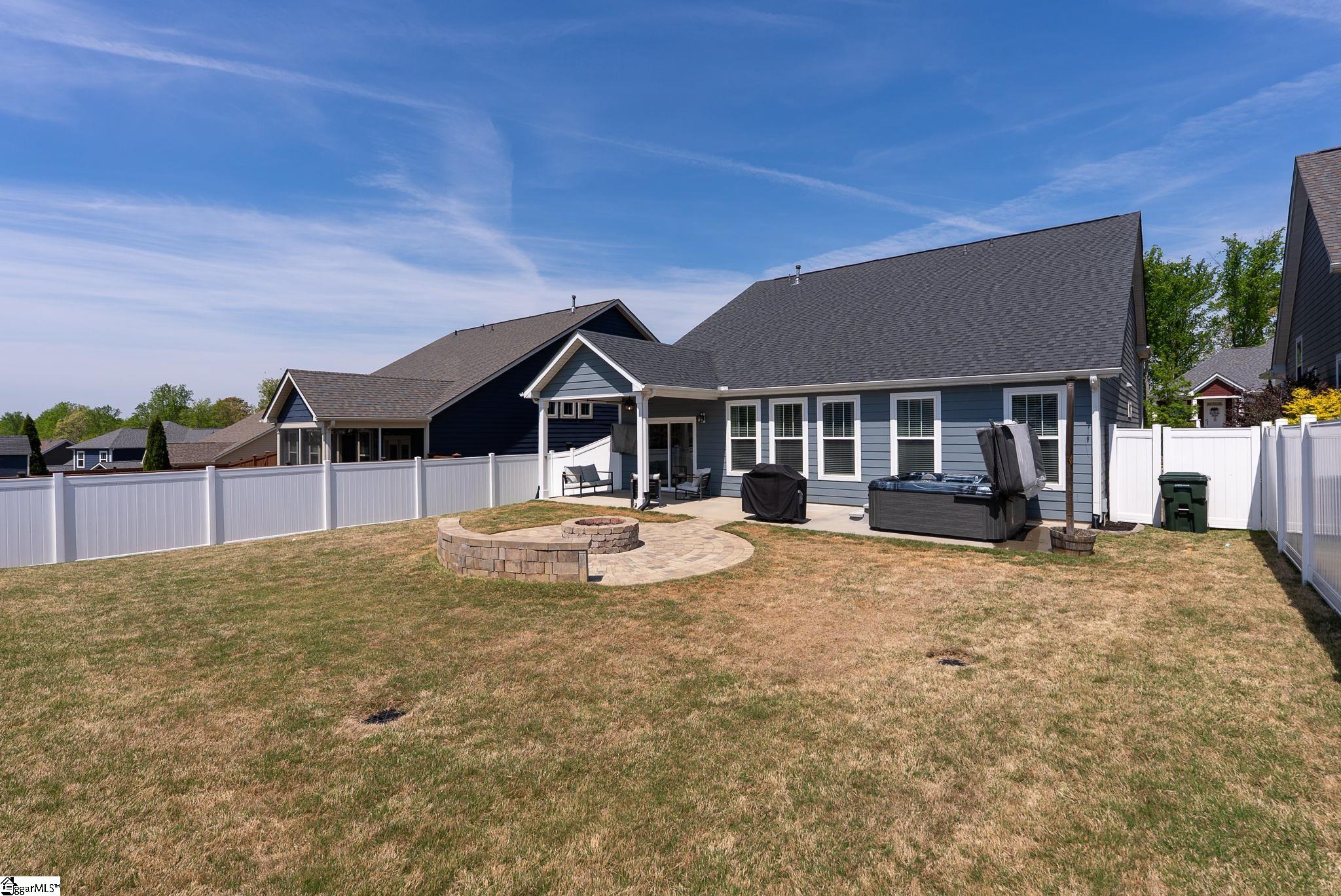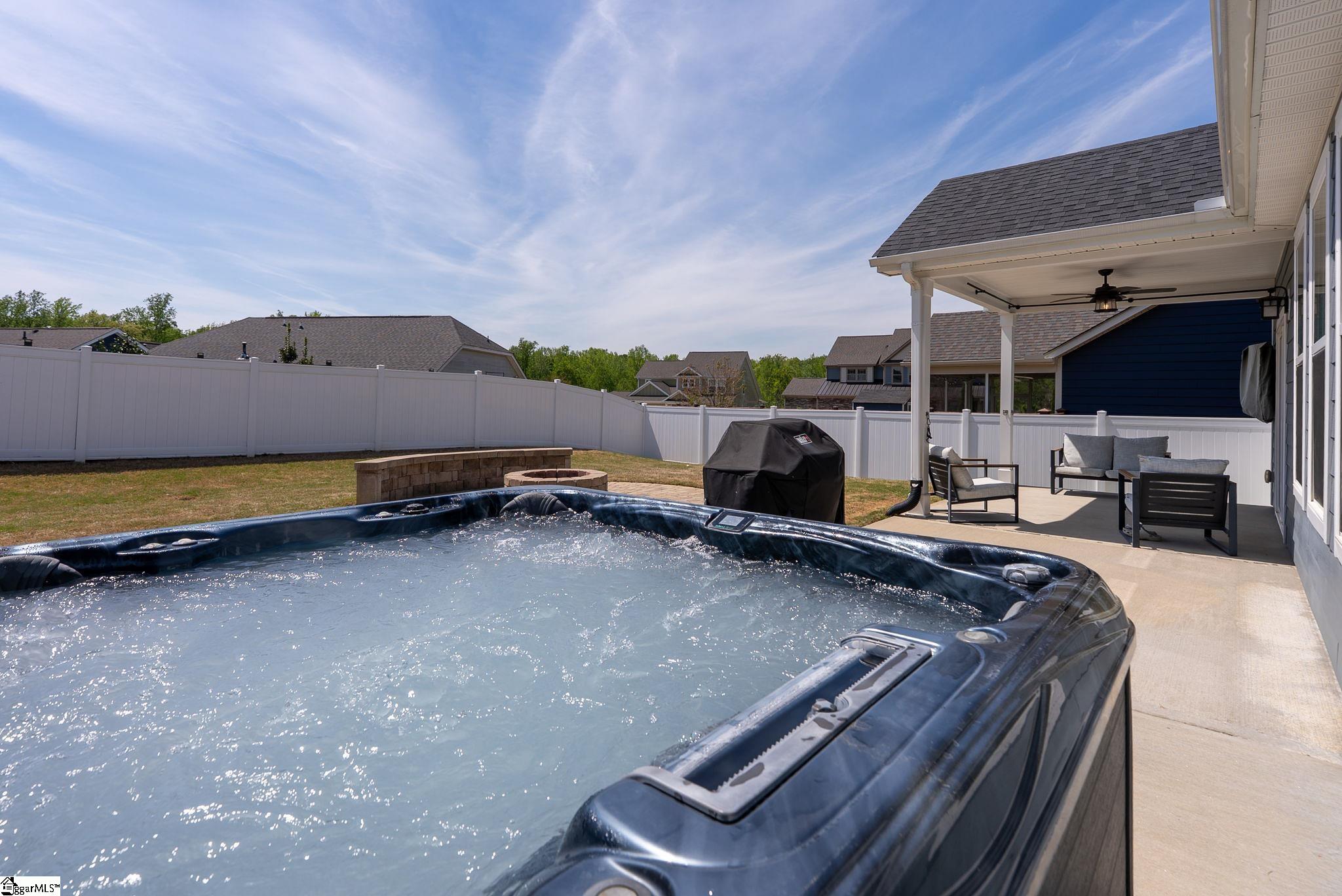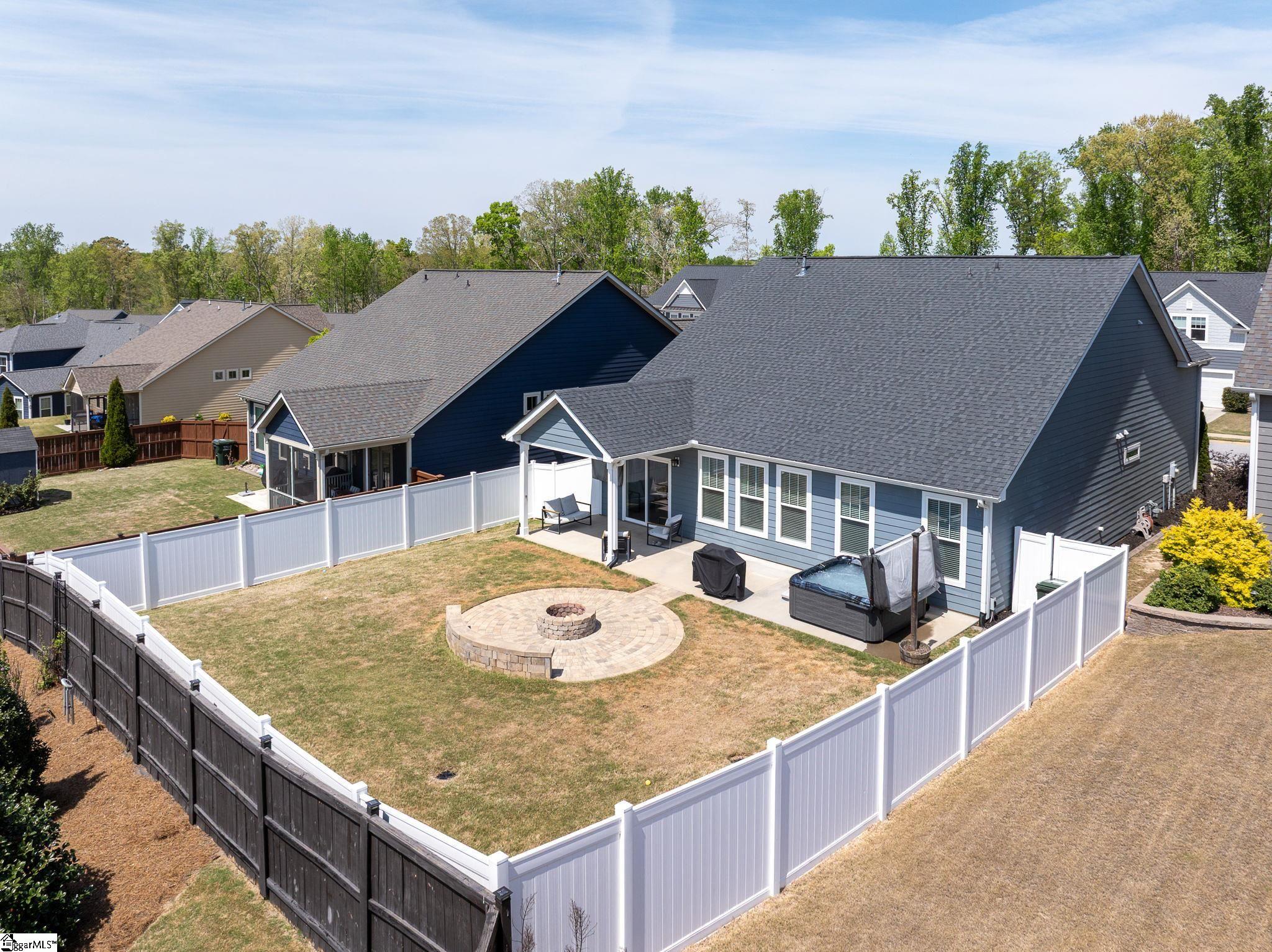 Welcome to 809 Lockhurst Dr., a stunning residence nestled in the desirable Coventry subdivision of Simpsonville. This beautiful four-bedroom, two-bathroom home perfectly blends modern elegance with everyday functionality. Inside, the open floor plan is defined by high vaulted ceilings and abundant natural light, creating an airy, spacious atmosphere. The heart of the home is the gourmet kitchen, which boasts a large central island, granite countertops, sleek stainless steel appliances, and plentiful cabinetry for all your storage needs. The thoughtful layout places the primary suite on the main floor alongside two additional bedrooms, ensuring ease of access and privacy. The primary suite offers a convenient main-level retreat, highlighted by an ensuite bathroom that features a double vanity, a large-format tile shower, and a generous walk-in closet. For added convenience, a dedicated walk-in laundry room and a two-car garage--perfect for extra storage--are also located on the main level. Upstairs, a versatile loft serves as a flexible space that can easily function as a fourth bedroom or a dynamic bonus room. Outdoor living is truly elevated here; a glass slider off the kitchen leads to a private oasis featuring a large fenced backyard, a covered patio, and an outdoor firepit. As a special bonus, the hot tub conveys with the home, offering the ultimate spot for relaxation. Residents also enjoy access to the community pool and a location that puts you moments away from the vibrant energy of Main Street Simpsonville, where local favorites like Sidewall Pizza, Houni's Italian Ice, and boutique shops await.