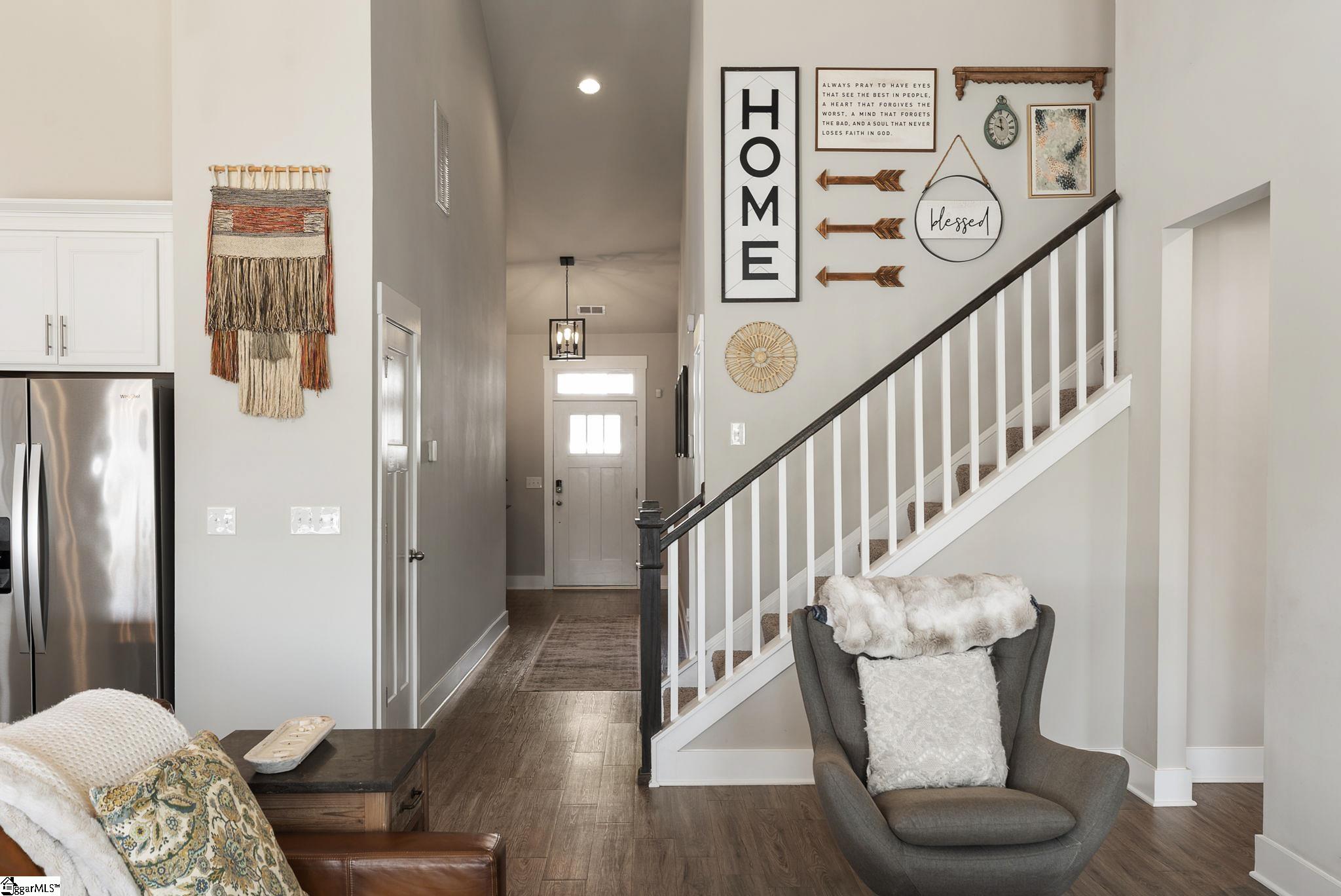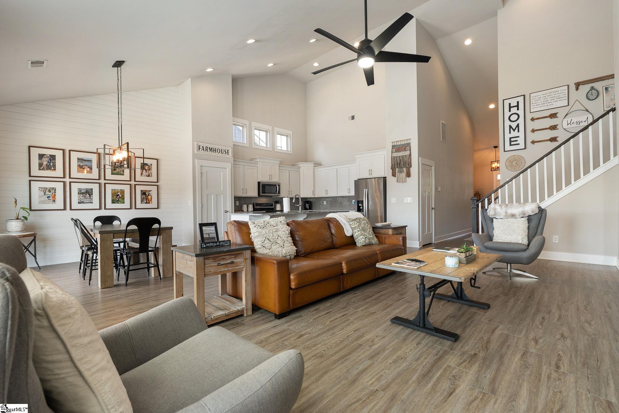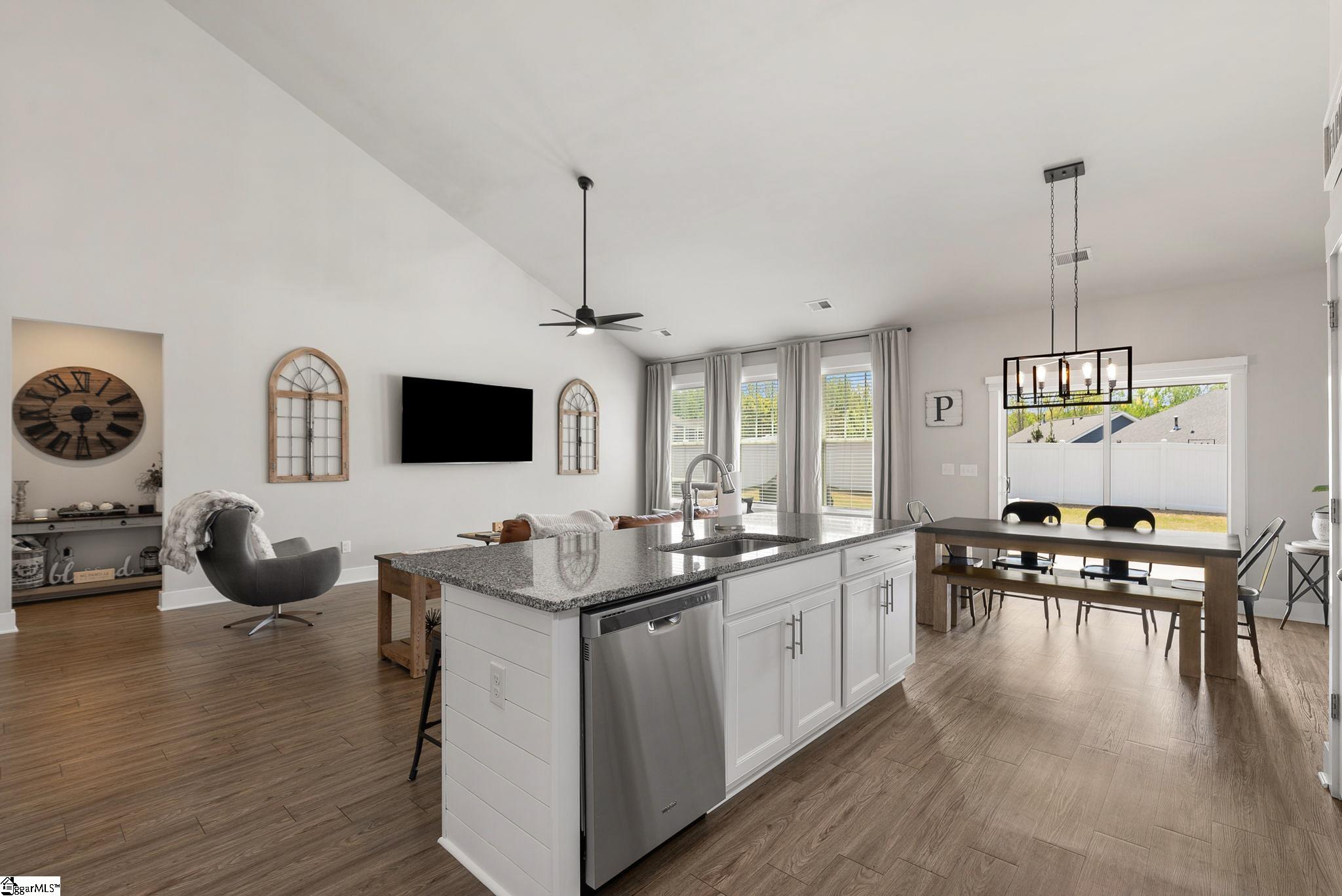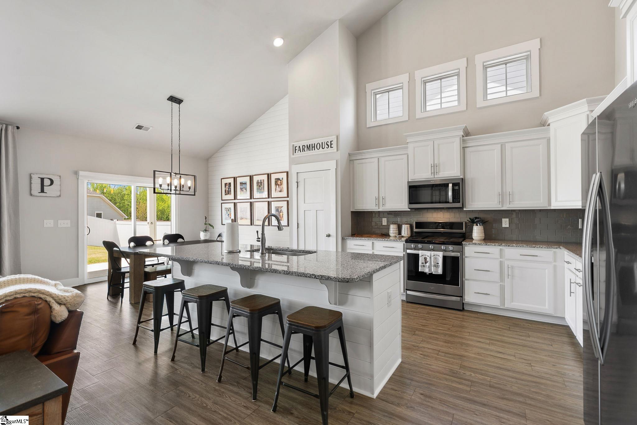 Welcome to 809 Lockhurst Dr., a stunning residence nestled in the desirable Coventry subdivision of Simpsonville. This beautiful four-bedroom, two-bathroom home perfectly blends modern elegance with everyday functionality. Inside, the open floor plan is defined by high vaulted ceilings and abundant natural light, creating an airy, spacious atmosphere. The heart of the home is the gourmet kitchen, which boasts a large central island, granite countertops, sleek stainless steel appliances, and plentiful cabinetry for all your storage needs. The thoughtful layout places the primary suite on the main floor alongside two additional bedrooms, ensuring ease of access and privacy. The primary suite offers a convenient main-level retreat, highlighted by an ensuite bathroom that features a double vanity, a large-format tile shower, and a generous walk-in closet. For added convenience, a dedicated walk-in laundry room and a two-car garage--perfect for extra storage--are also located on the main level. Upstairs, a versatile loft serves as a flexible space that can easily function as a fourth bedroom or a dynamic bonus room. Outdoor living is truly elevated here; a glass slider off the kitchen leads to a private oasis featuring a large fenced backyard, a covered patio, and an outdoor firepit. As a special bonus, the hot tub conveys with the home, offering the ultimate spot for relaxation. Residents also enjoy access to the community pool and a location that puts you moments away from the vibrant energy of Main Street Simpsonville, where local favorites like Sidewall Pizza, Houni's Italian Ice, and boutique shops await.