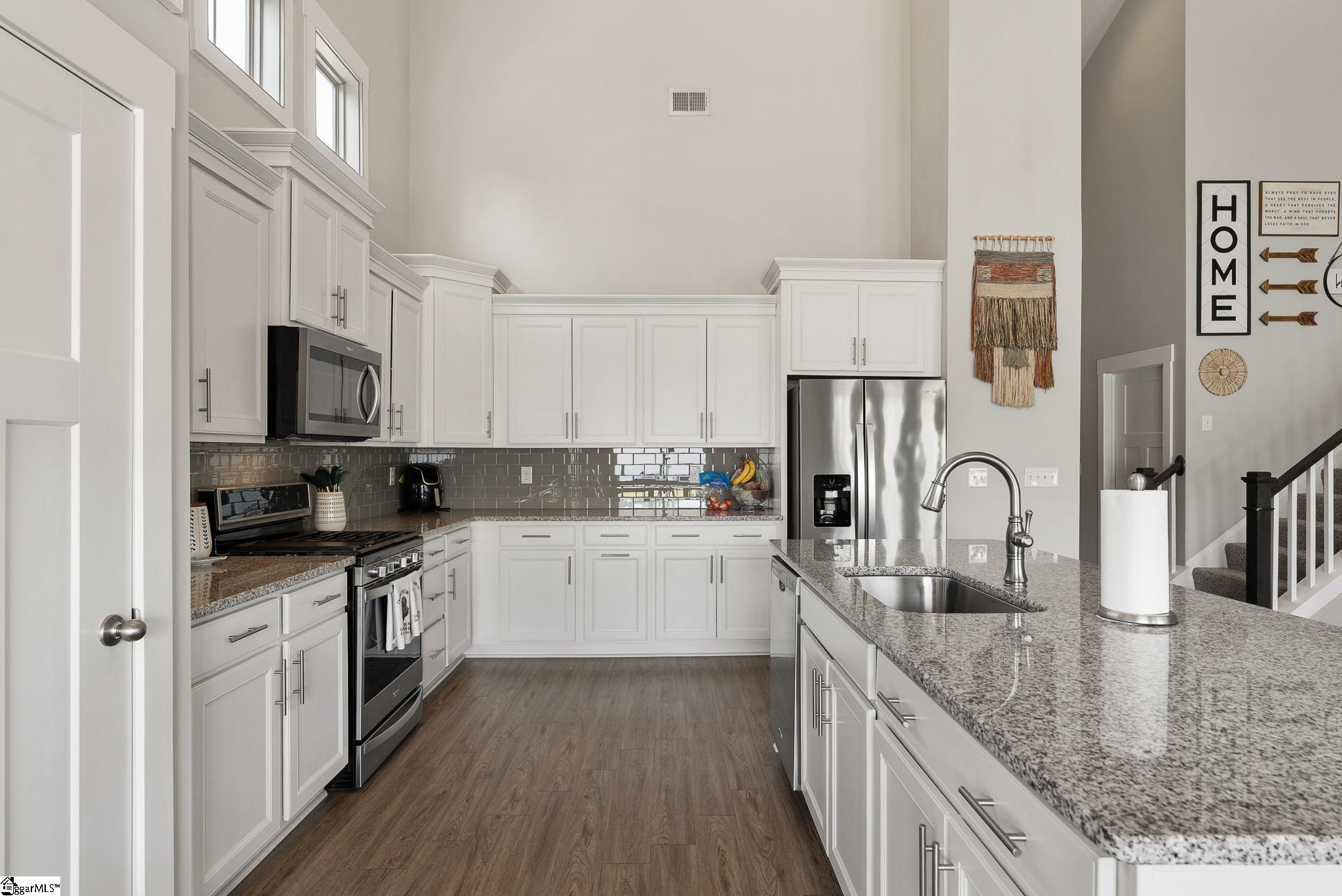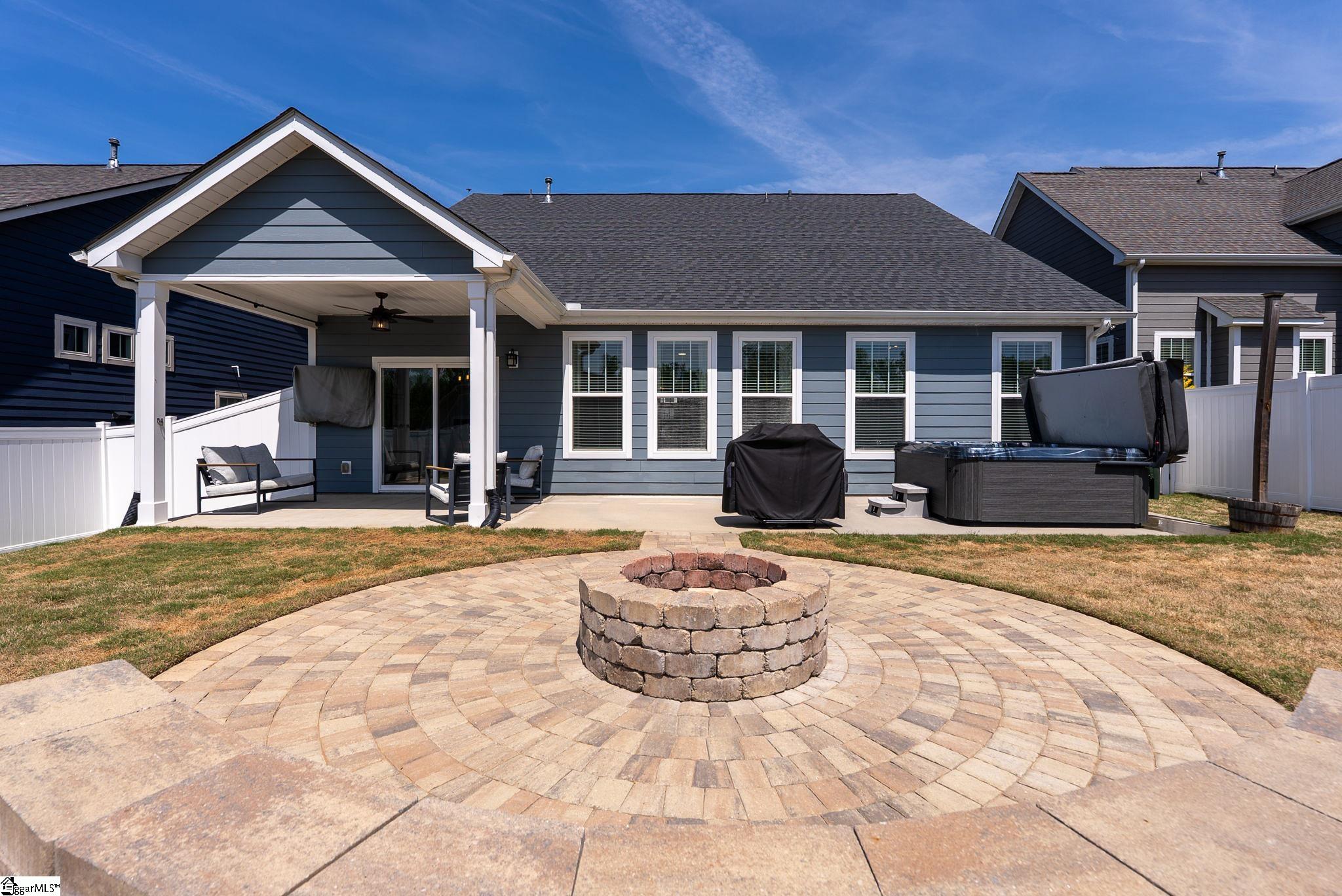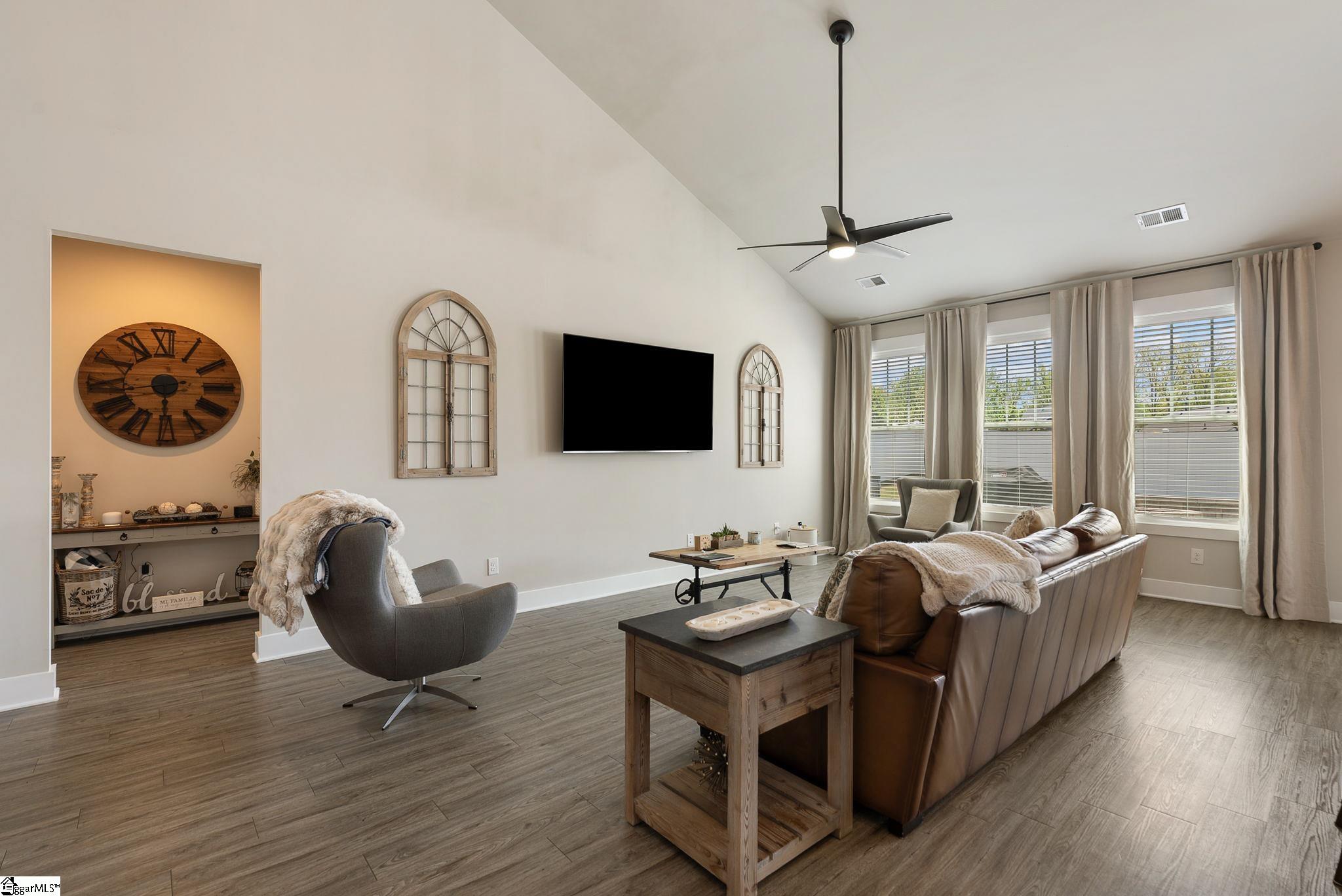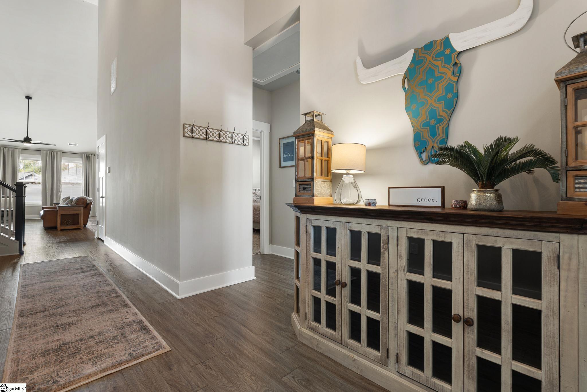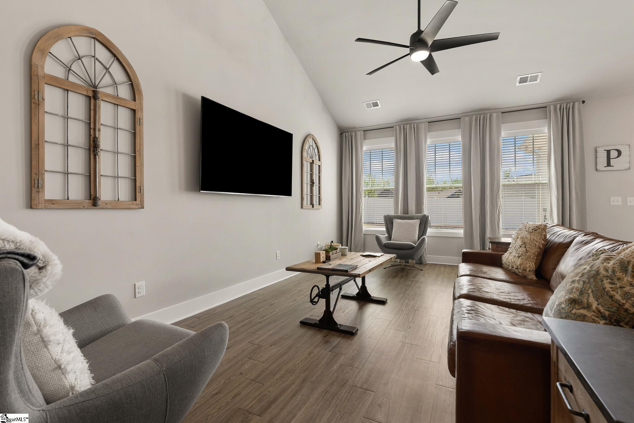 Welcome to 809 Lockhurst Dr., a stunning residence nestled in the desirable Coventry subdivision of Simpsonville. This beautiful four-bedroom, two-bathroom home perfectly blends modern elegance with everyday functionality. Inside, the open floor plan is defined by high vaulted ceilings and abundant natural light, creating an airy, spacious atmosphere. The heart of the home is the gourmet kitchen, which boasts a large central island, granite countertops, sleek stainless steel appliances, and plentiful cabinetry for all your storage needs. The thoughtful layout places the primary suite on the main floor alongside two additional bedrooms, ensuring ease of access and privacy. The primary suite offers a convenient main-level retreat, highlighted by an ensuite bathroom that features a double vanity, a large-format tile shower, and a generous walk-in closet. For added convenience, a dedicated walk-in laundry room and a two-car garage--perfect for extra storage--are also located on the main level. Upstairs, a versatile loft serves as a flexible space that can easily function as a fourth bedroom or a dynamic bonus room. Outdoor living is truly elevated here; a glass slider off the kitchen leads to a private oasis featuring a large fenced backyard, a covered patio, and an outdoor firepit. As a special bonus, the hot tub conveys with the home, offering the ultimate spot for relaxation. Residents also enjoy access to the community pool and a location that puts you moments away from the vibrant energy of Main Street Simpsonville, where local favorites like Sidewall Pizza, Houni's Italian Ice, and boutique shops await.