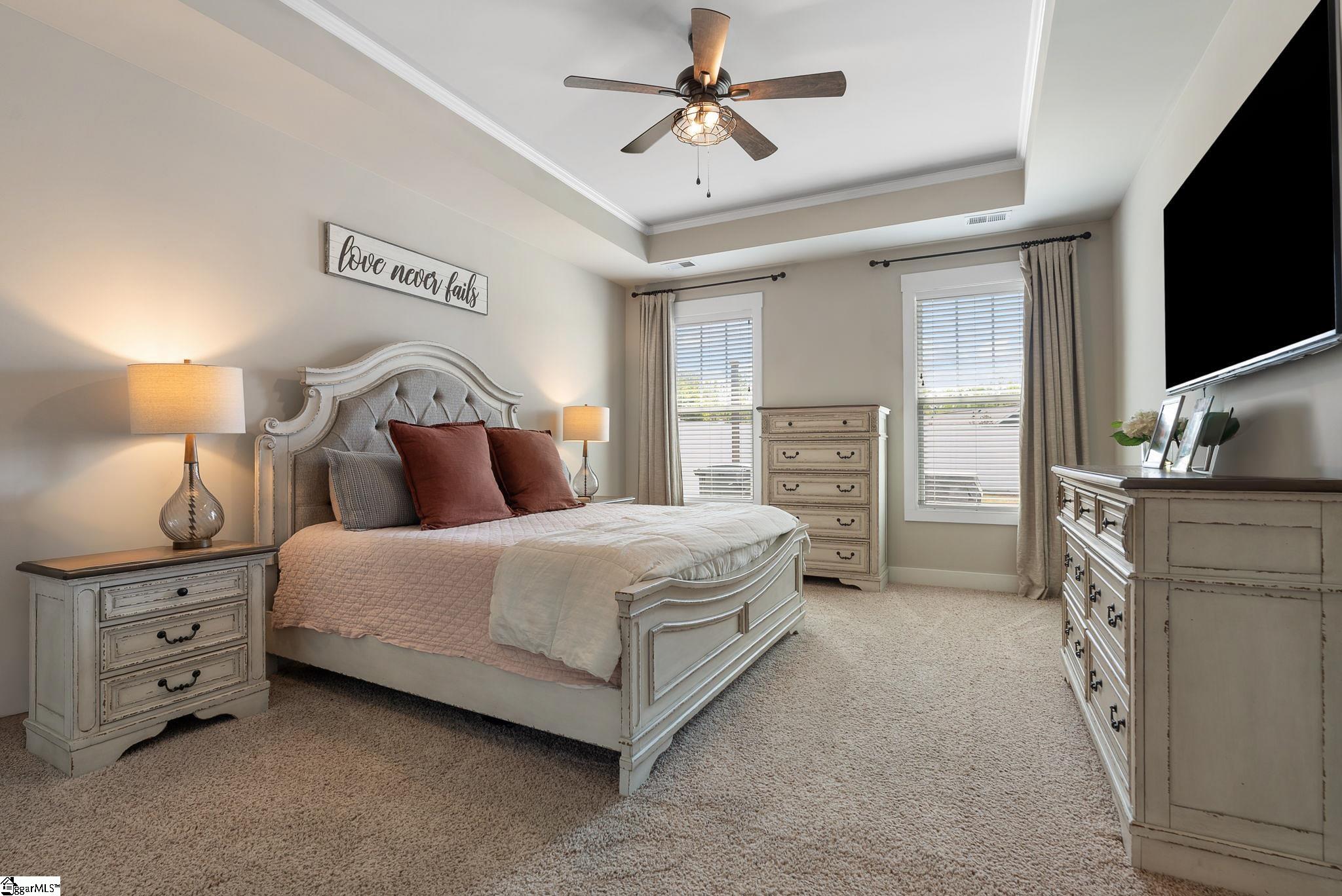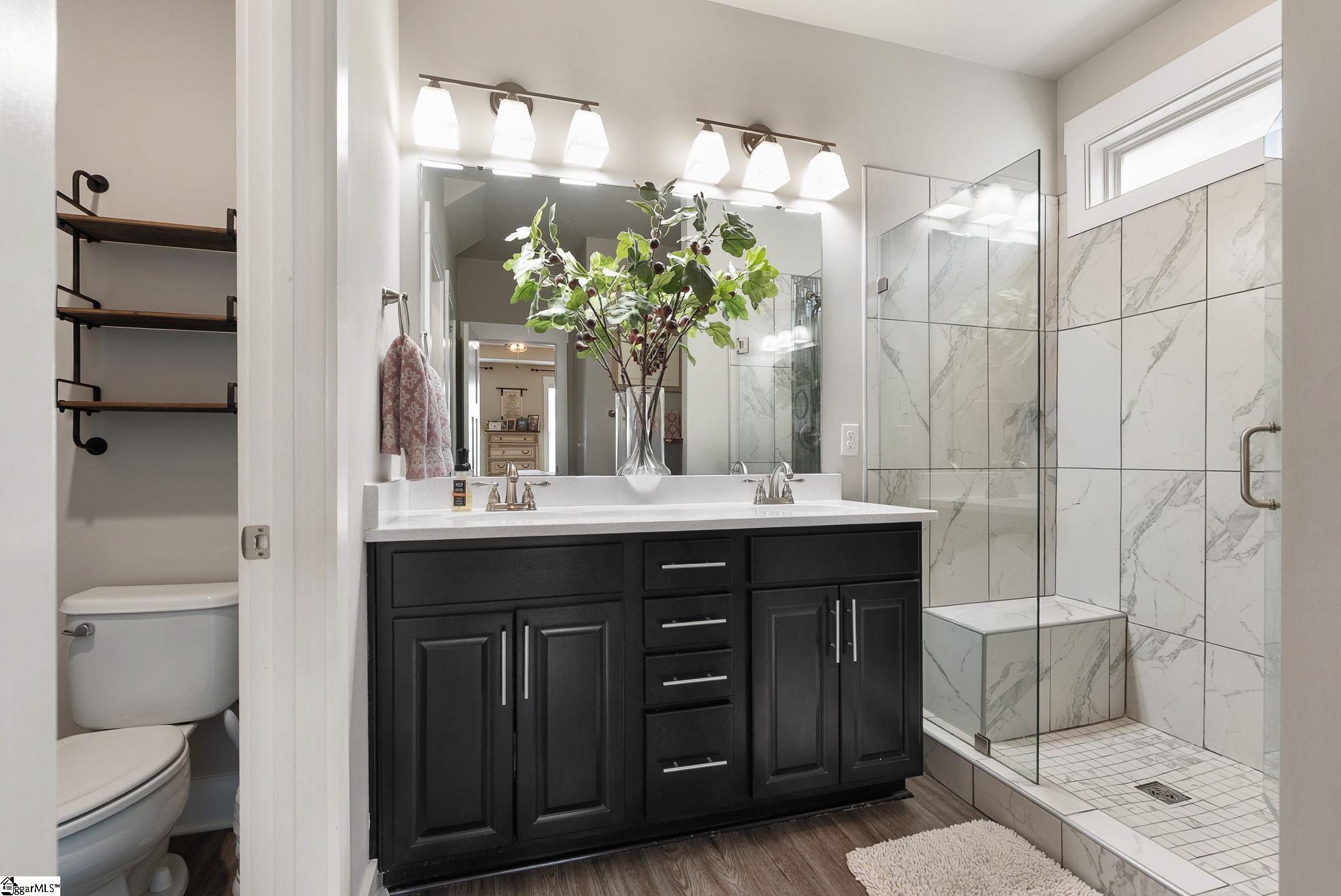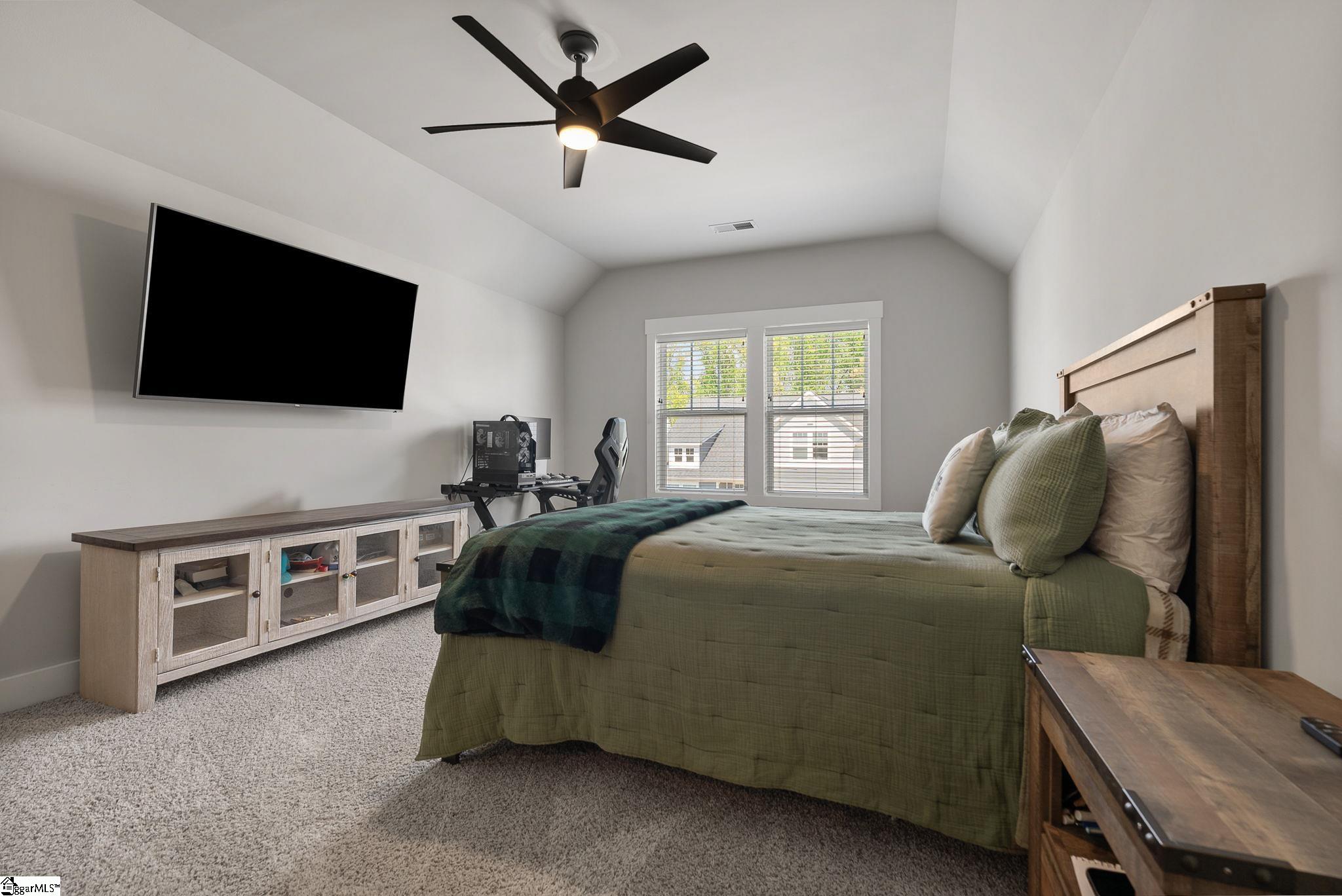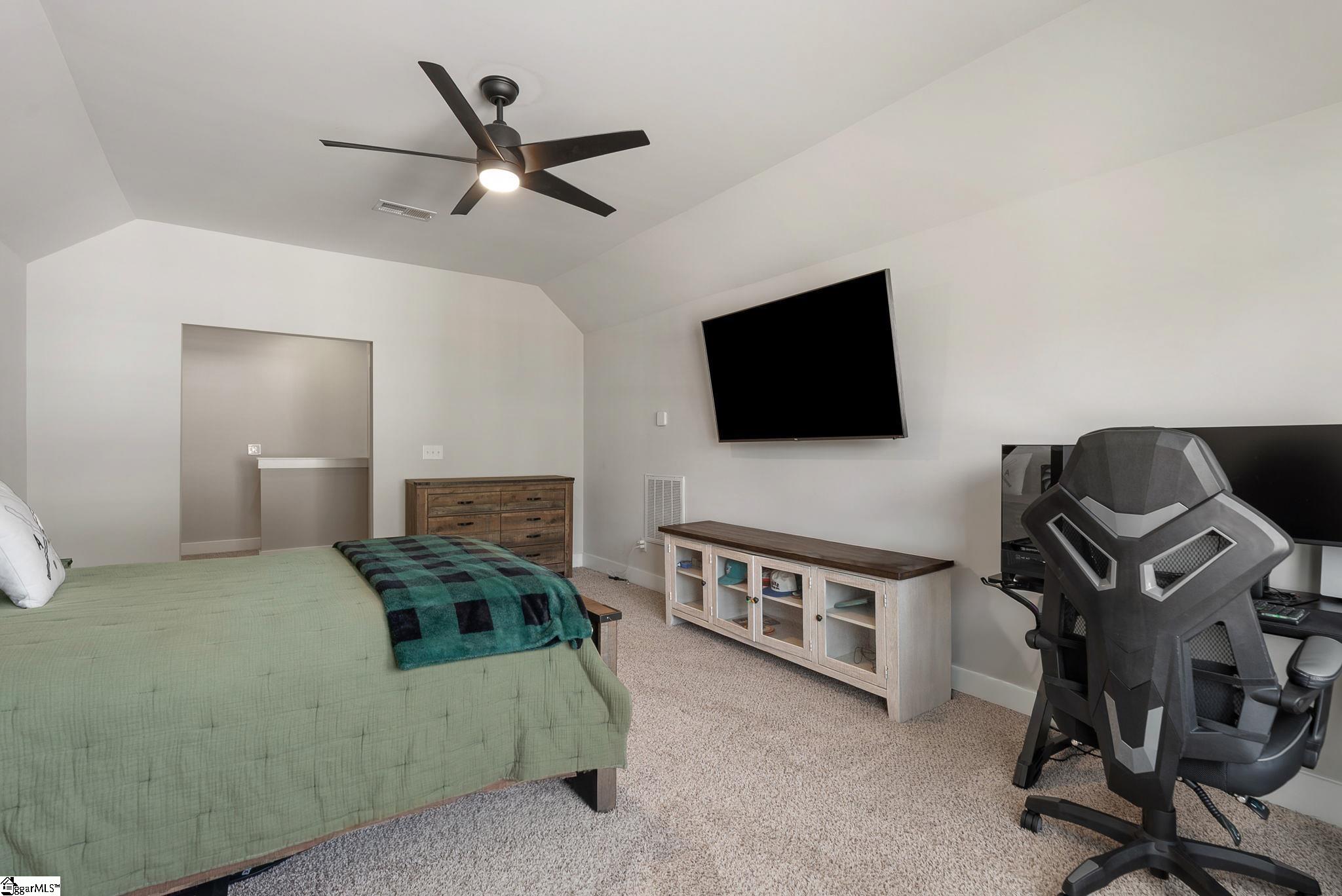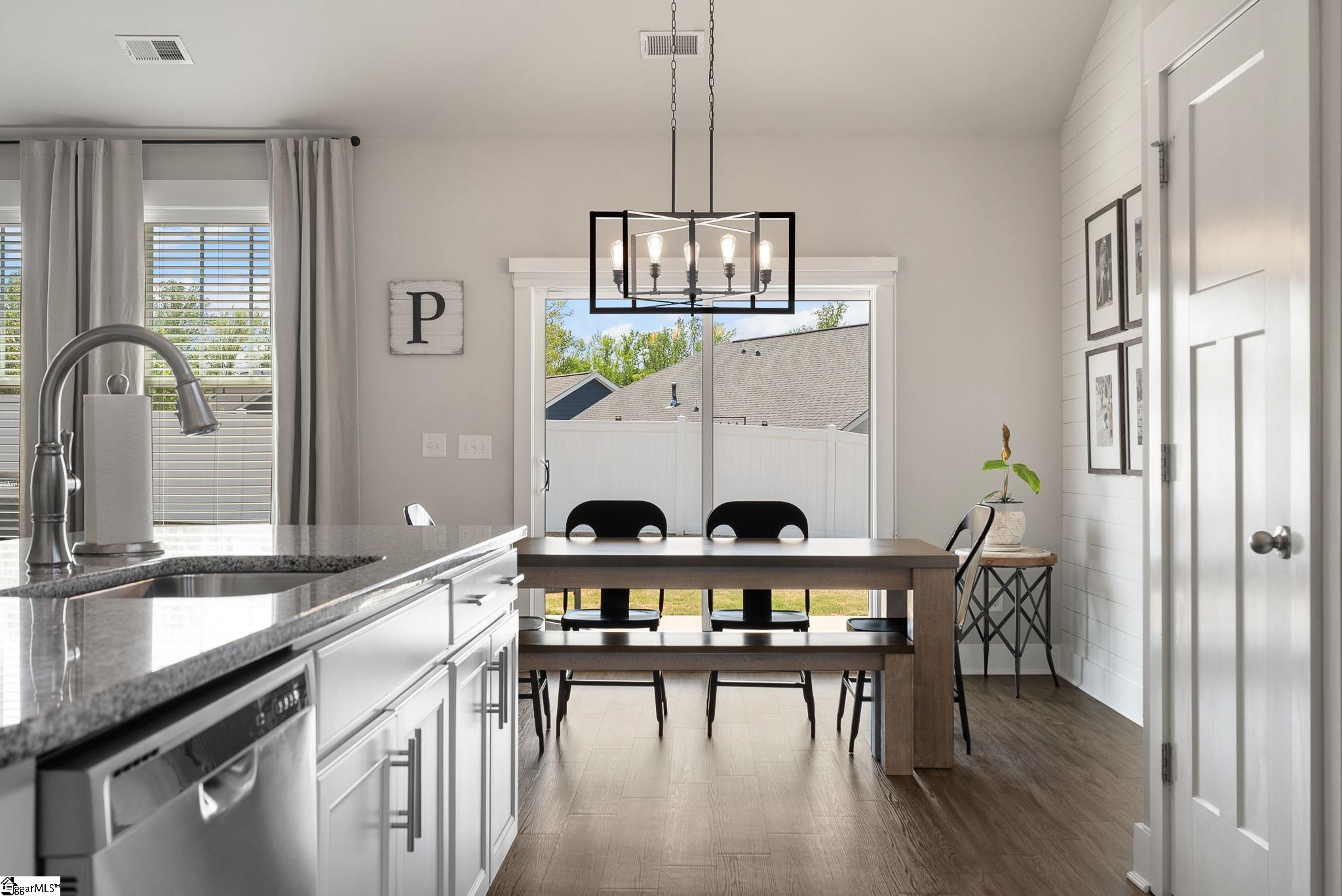 Welcome to 809 Lockhurst Dr., a stunning residence nestled in the desirable Coventry subdivision of Simpsonville. This beautiful four-bedroom, two-bathroom home perfectly blends modern elegance with everyday functionality. Inside, the open floor plan is defined by high vaulted ceilings and abundant natural light, creating an airy, spacious atmosphere. The heart of the home is the gourmet kitchen, which boasts a large central island, granite countertops, sleek stainless steel appliances, and plentiful cabinetry for all your storage needs. The thoughtful layout places the primary suite on the main floor alongside two additional bedrooms, ensuring ease of access and privacy. The primary suite offers a convenient main-level retreat, highlighted by an ensuite bathroom that features a double vanity, a large-format tile shower, and a generous walk-in closet. For added convenience, a dedicated walk-in laundry room and a two-car garage--perfect for extra storage--are also located on the main level. Upstairs, a versatile loft serves as a flexible space that can easily function as a fourth bedroom or a dynamic bonus room. Outdoor living is truly elevated here; a glass slider off the kitchen leads to a private oasis featuring a large fenced backyard, a covered patio, and an outdoor firepit. As a special bonus, the hot tub conveys with the home, offering the ultimate spot for relaxation. Residents also enjoy access to the community pool and a location that puts you moments away from the vibrant energy of Main Street Simpsonville, where local favorites like Sidewall Pizza, Houni's Italian Ice, and boutique shops await.