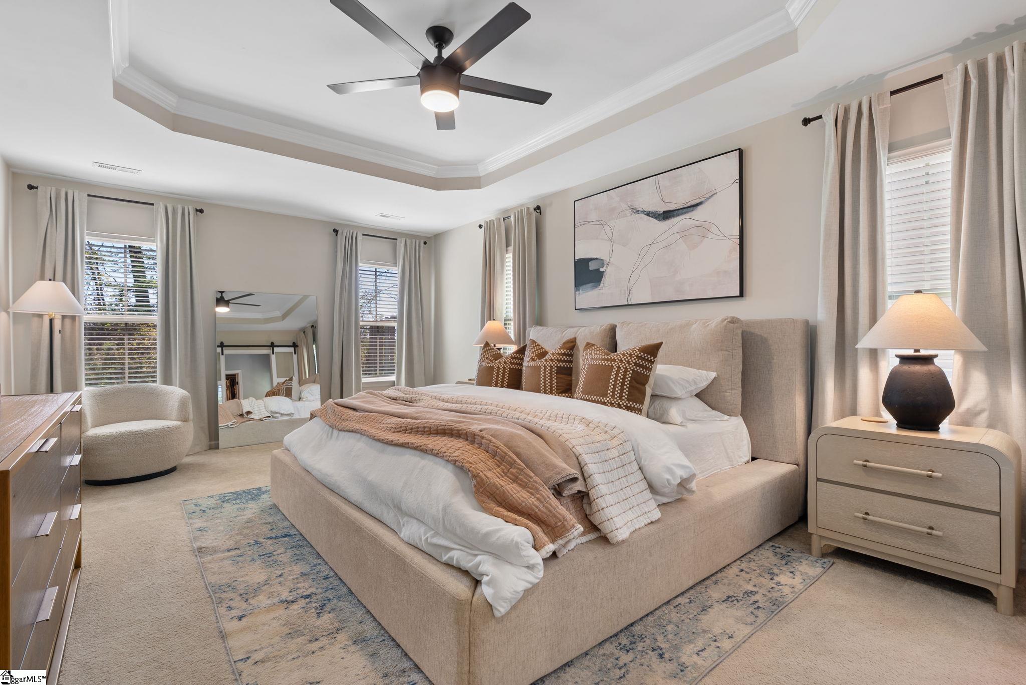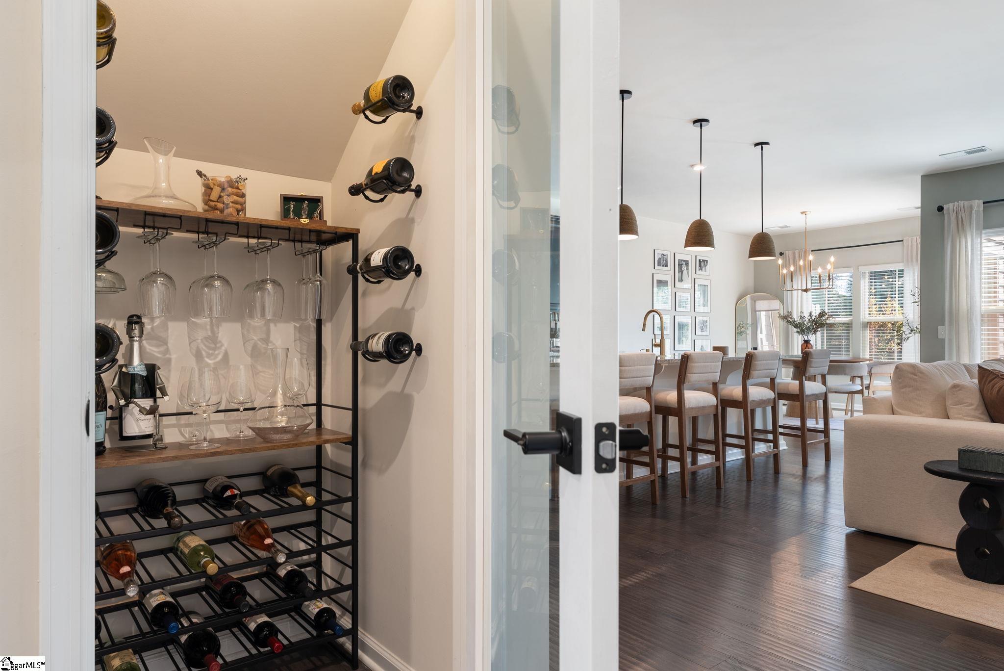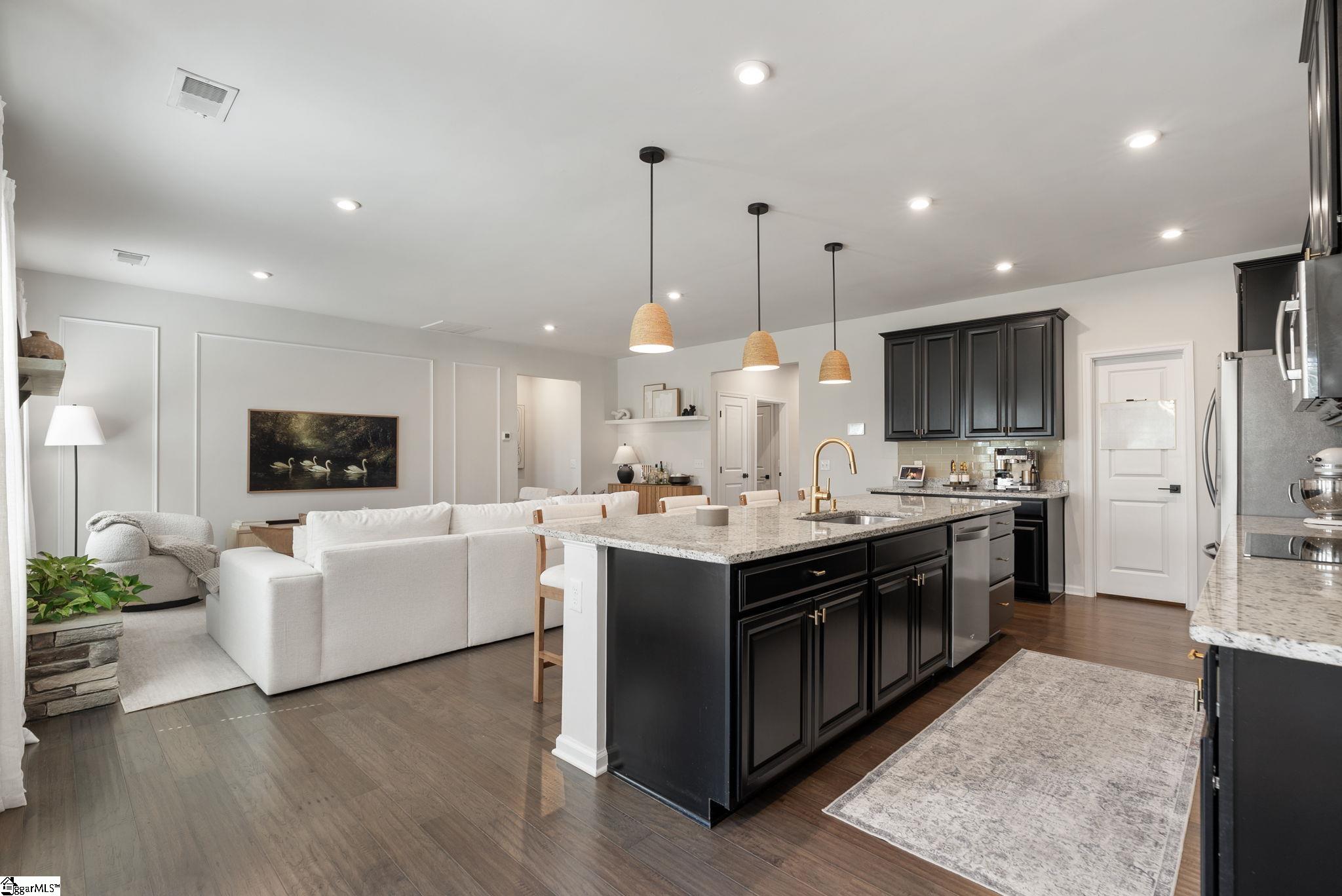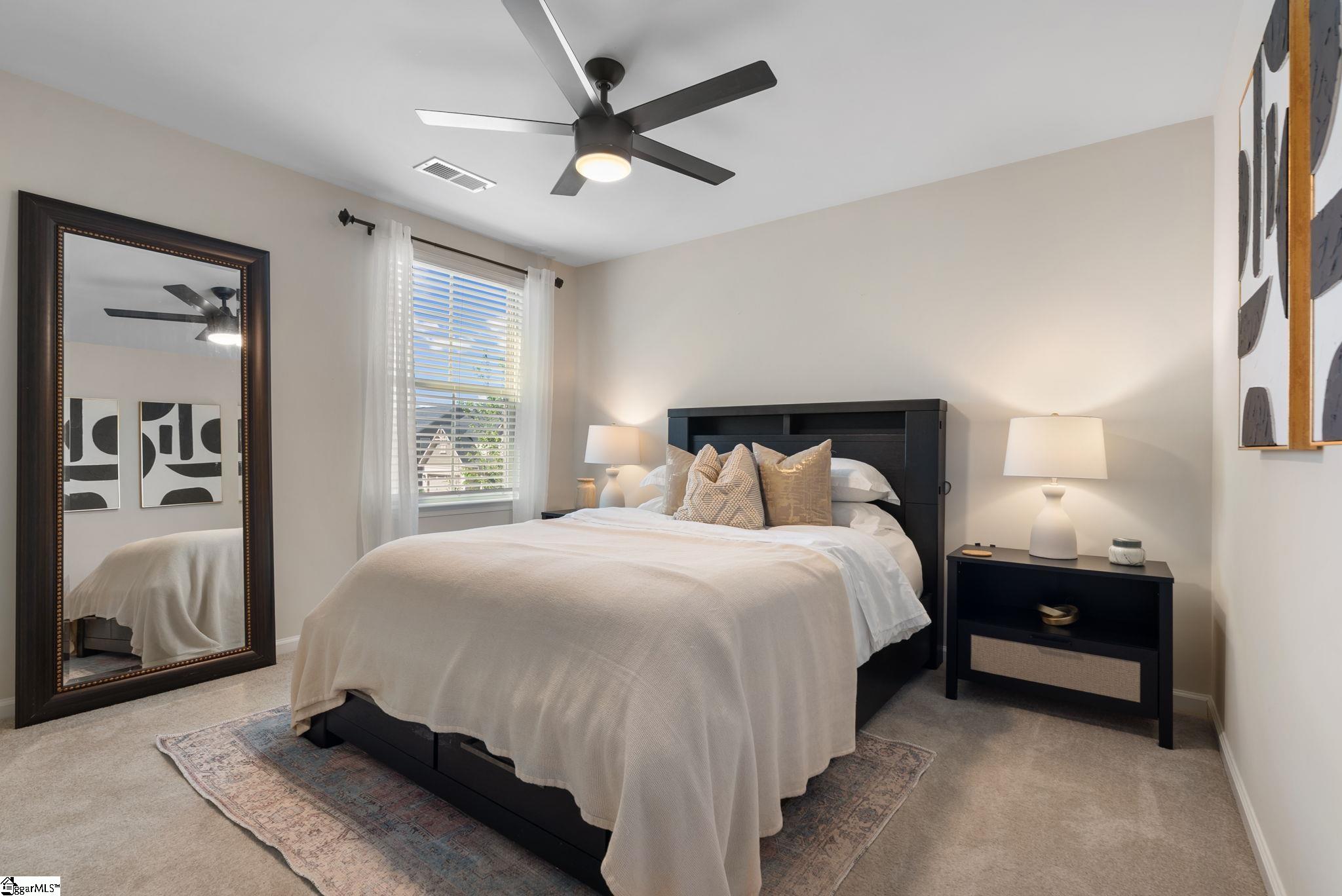 Nestled in the prestigious Five Forks enclave, 82 Hemingway Lane is a masterpiece of craftsman sophistication that seamlessly harmonizes architectural elegance with a low-maintenance lifestyle. The interior is defined by a sense of volume and light, characterized by expansive nine-foot ceilings and rich hardwood floors that guide you through an intuitive open-concept layout. At the heart of the home, a stately living room anchored by a classic gas fireplace flows effortlessly into a gourmet culinary suite, where premium granite countertops, a substantial social island, and professional-grade double wall ovens cater to the modern epicurean. This thoughtful design extends to a dedicated wine cellar closet and a sun-drenched breakfast nook, ideal for both grand entertaining and quiet mornings. The main-level primary retreat serves as a private sanctuary, featuring a spa-inspired en-suite with a deep garden soaking tub and a voluminous walk-in closet. Upstairs, the home offers immense versatility with three generous bedrooms and a sprawling den, complemented by an unfinished attic that provides discreet, ample storage. The exterior artistry is equally refined, featuring a private patio and a professionally landscaped lot maintained by a full-yard irrigation system. With an HOA that oversees all lawn care, this residence offers a turnkey lifestyle of "luxury without the labor," all while being situated moments from the premier dining of Five Forks and the vibrant energy of Simpsonville's historic Main Street.