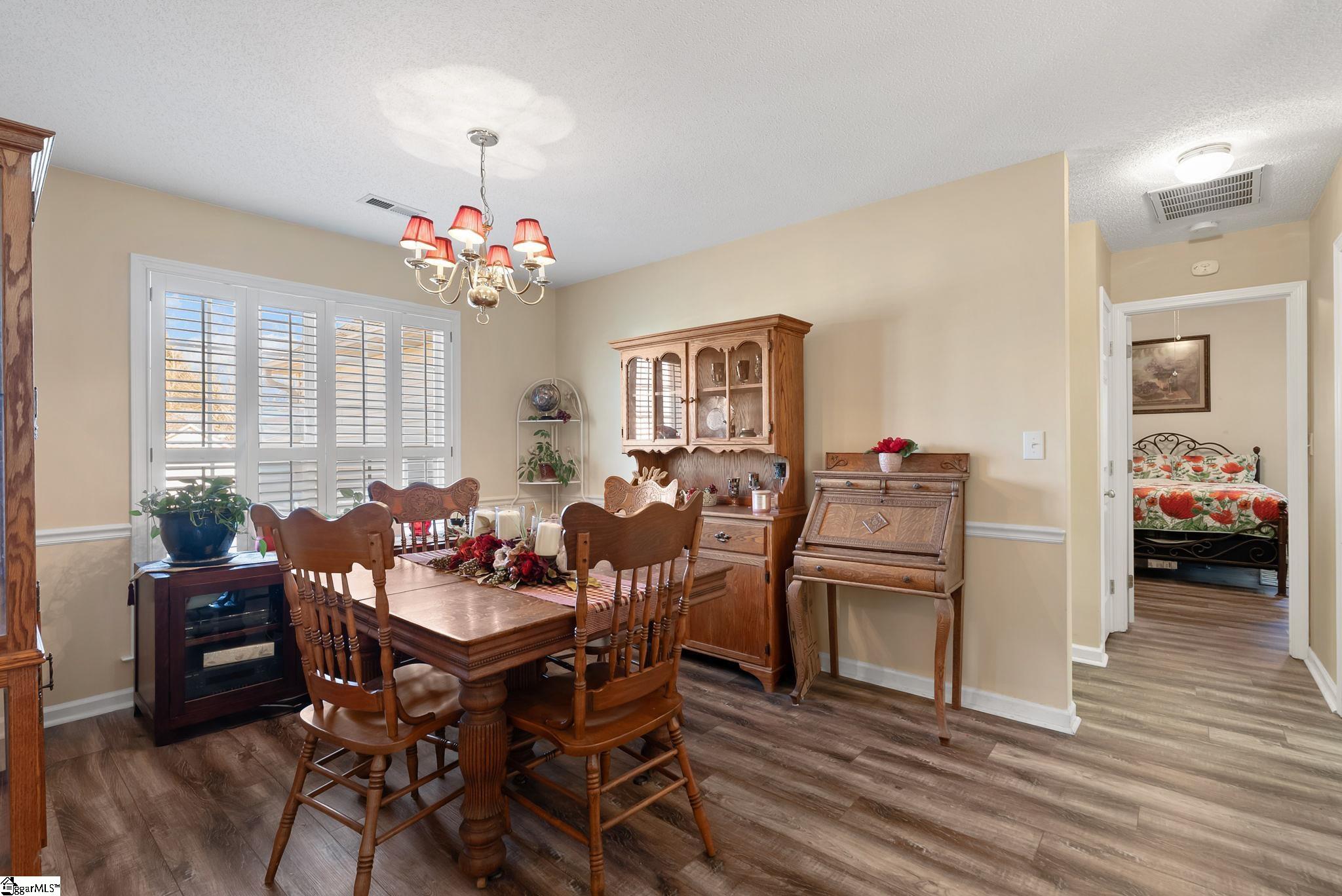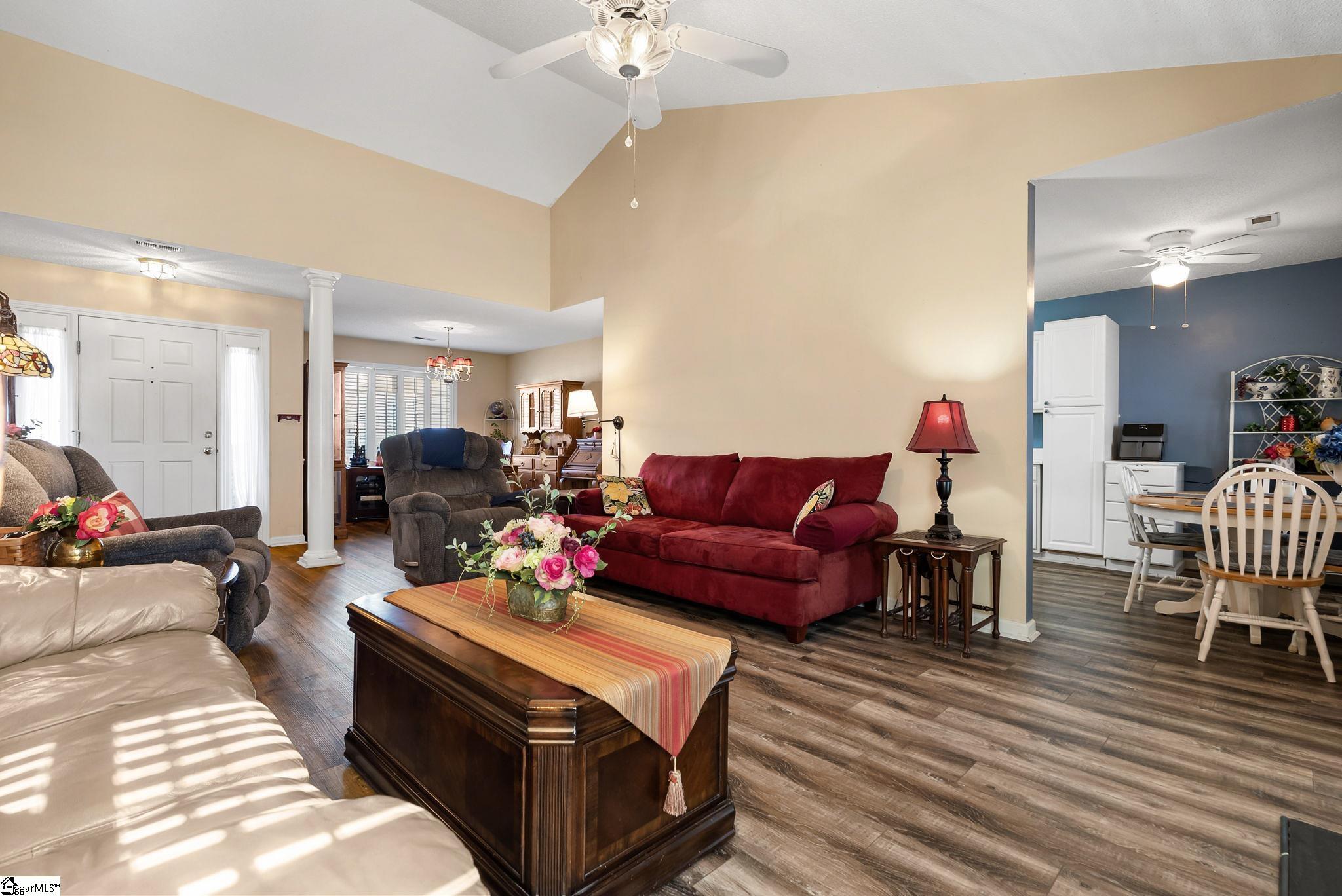Discover this well-maintained three-bedroom, two-bathroom single-story home at 9 Pheasant Ridge Dr. in Taylors. At the heart of the home, the inviting living room boasts vaulted ceilings and a cozy gas fireplace, flowing seamlessly into a kitchen equipped with sleek stainless steel appliances and an abundance of cabinetry. For those who love to host, the formal dining area provides the perfect backdrop for holiday meals and intimate gatherings. The spacious primary suite serves as a private retreat, with vaulted ceilings and a full bath featuring a separate shower and tub. Two additional bedrooms share a second bathroom on the opposite side, as the home features a thoughtful split floor plan that prioritizes privacy. Practicality meets convenience with a dedicated walk-in laundry room and an attached two-car garage that offers ample room for vehicles and extra storage. Step outside to discover your own private oasis: a screened porch perfect for morning coffee and a sprawling, large backyard complete with an outbuilding for hobbies or tools. Recent updates include new LVP flooring and plumbing pipes. Located just minutes from the vibrant retail and dining corridor of Wade Hampton Blvd. and only a short drive to the award-winning downtown Greenville, this home offers the perfect balance of suburban tranquility and urban accessibility.